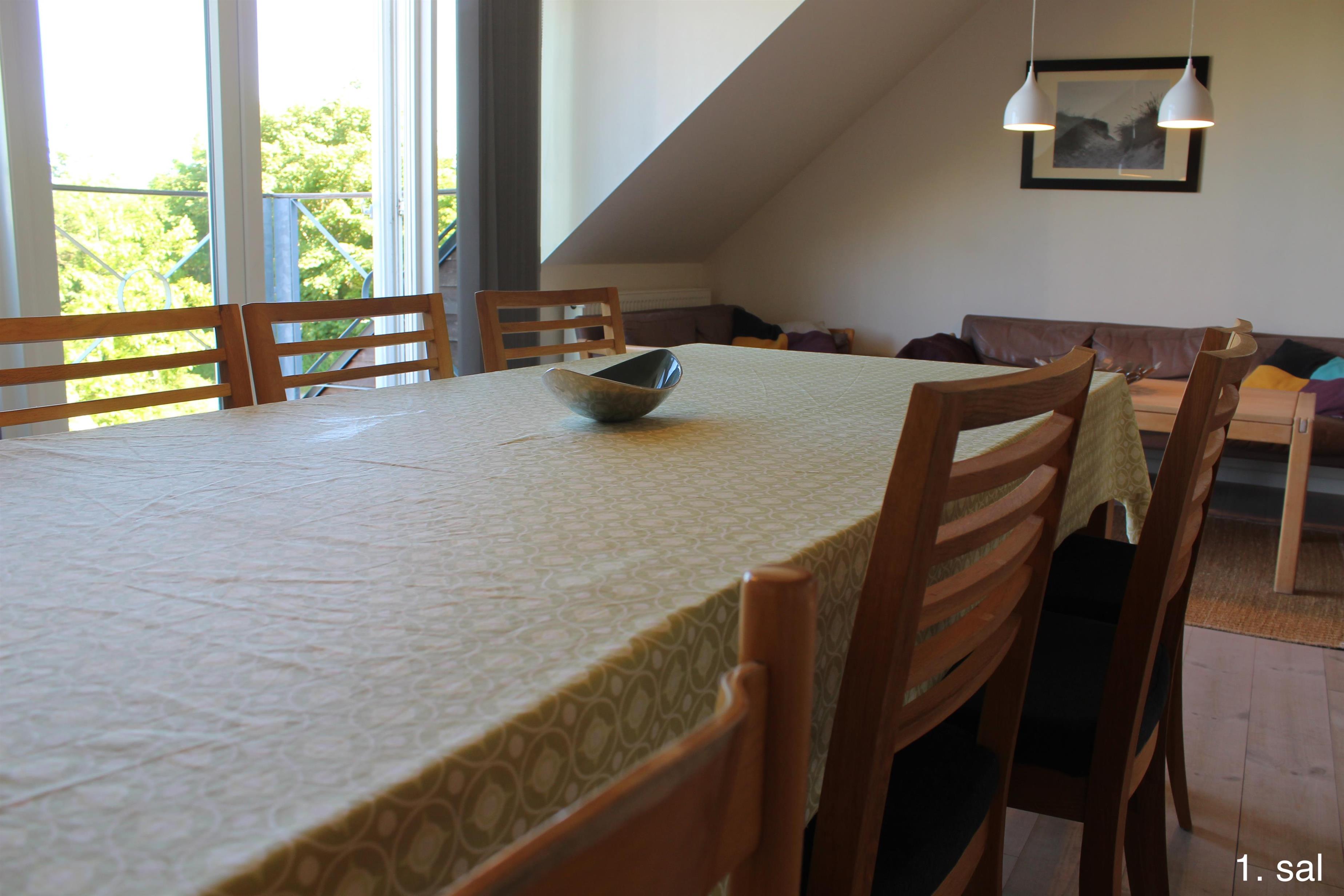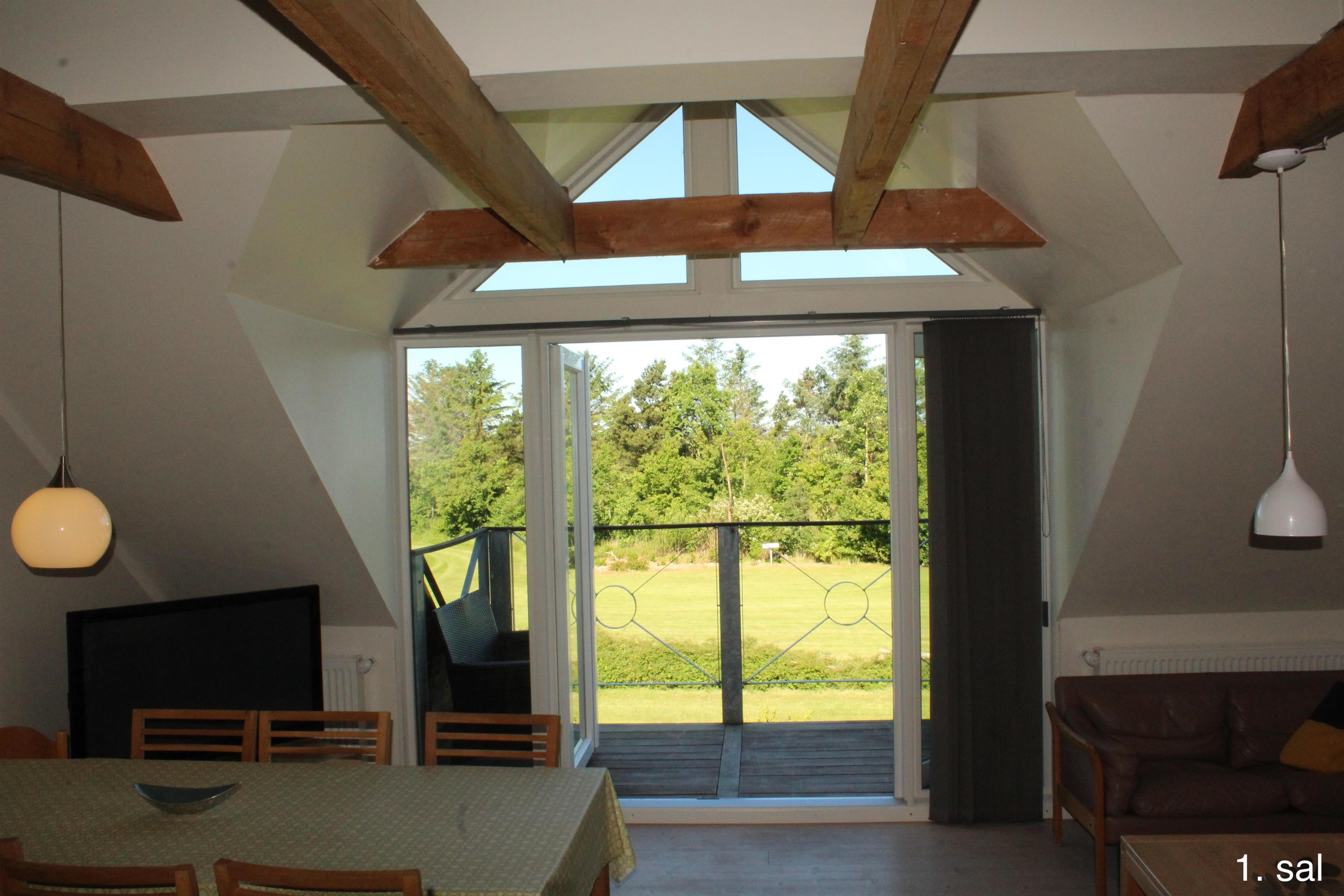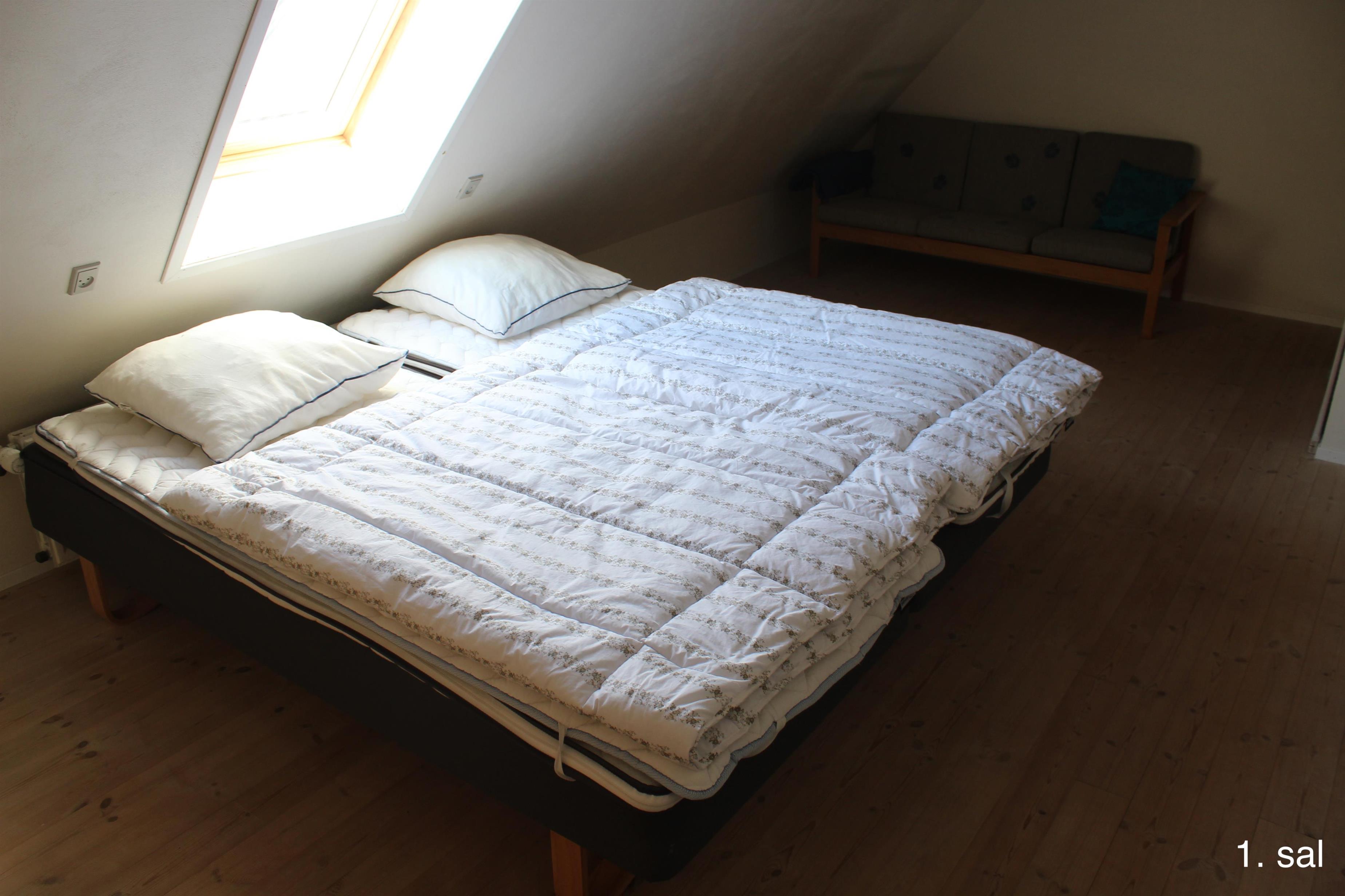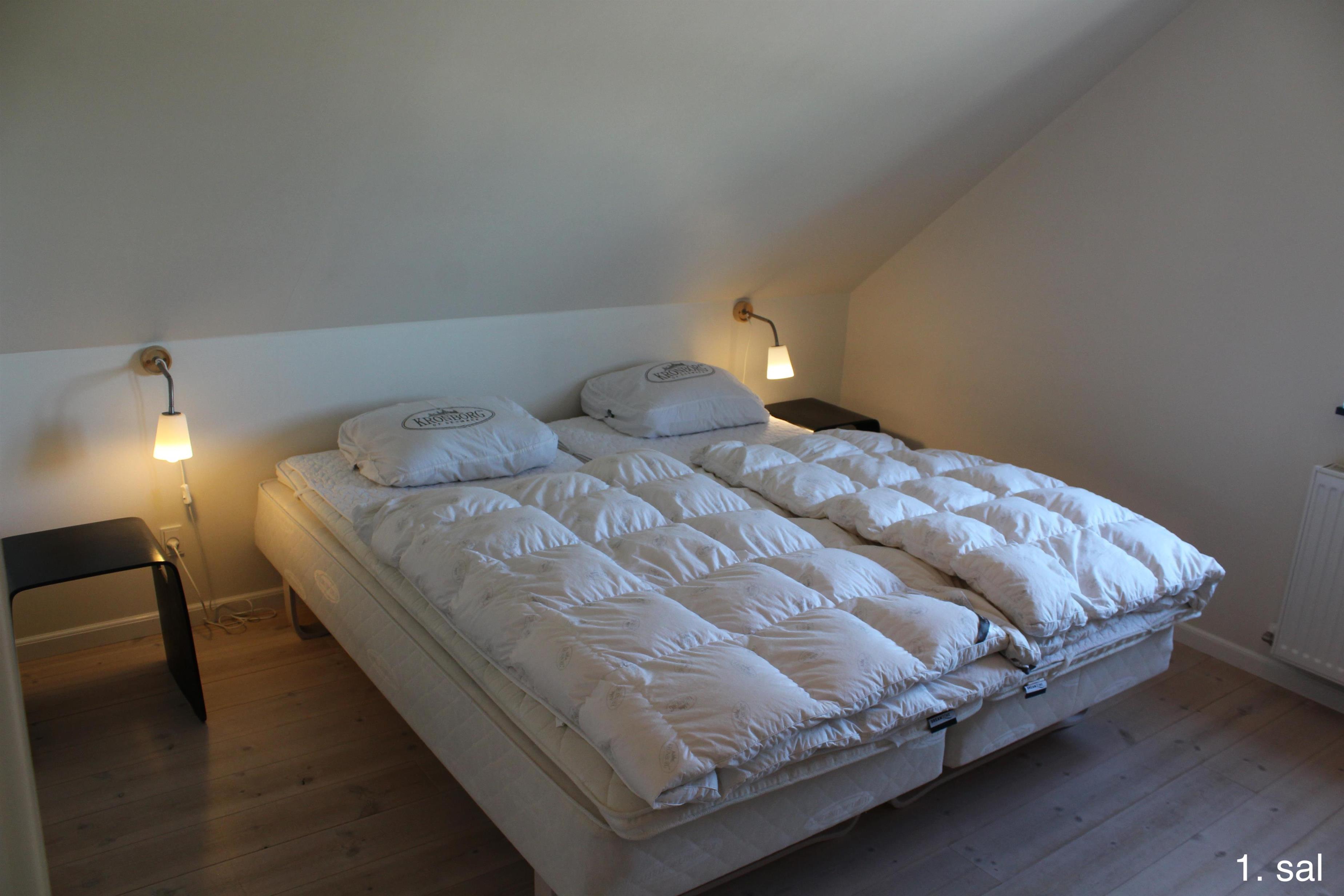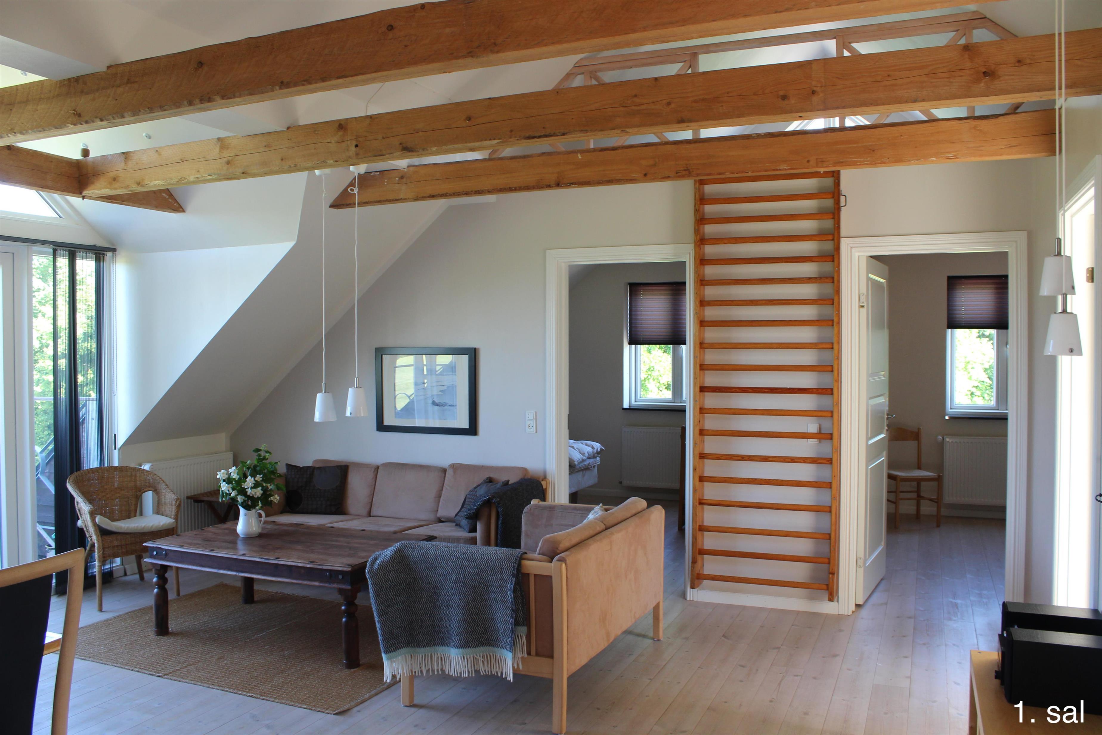 Im 1. Stock des Haupthauses befinden sich 2 Apartments mit 5 Doppelzimmern und 2 ausgebauten Dachböden mit insgesamt 8 Schlafplätzen sowie einem Badezimmer. Von beiden Wohnungen aus haben Sie Zugang zu einem kleinen Balkon mit Aussicht über den Filsø-See.