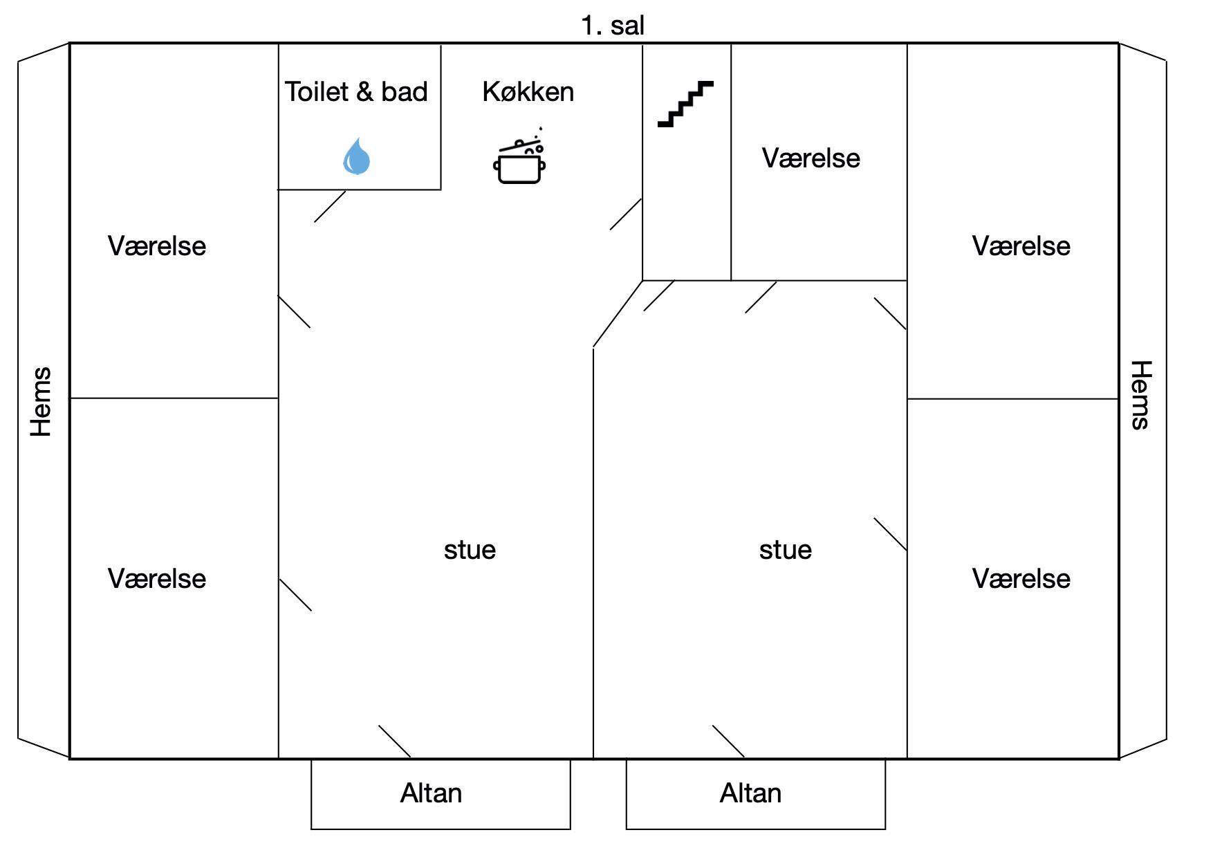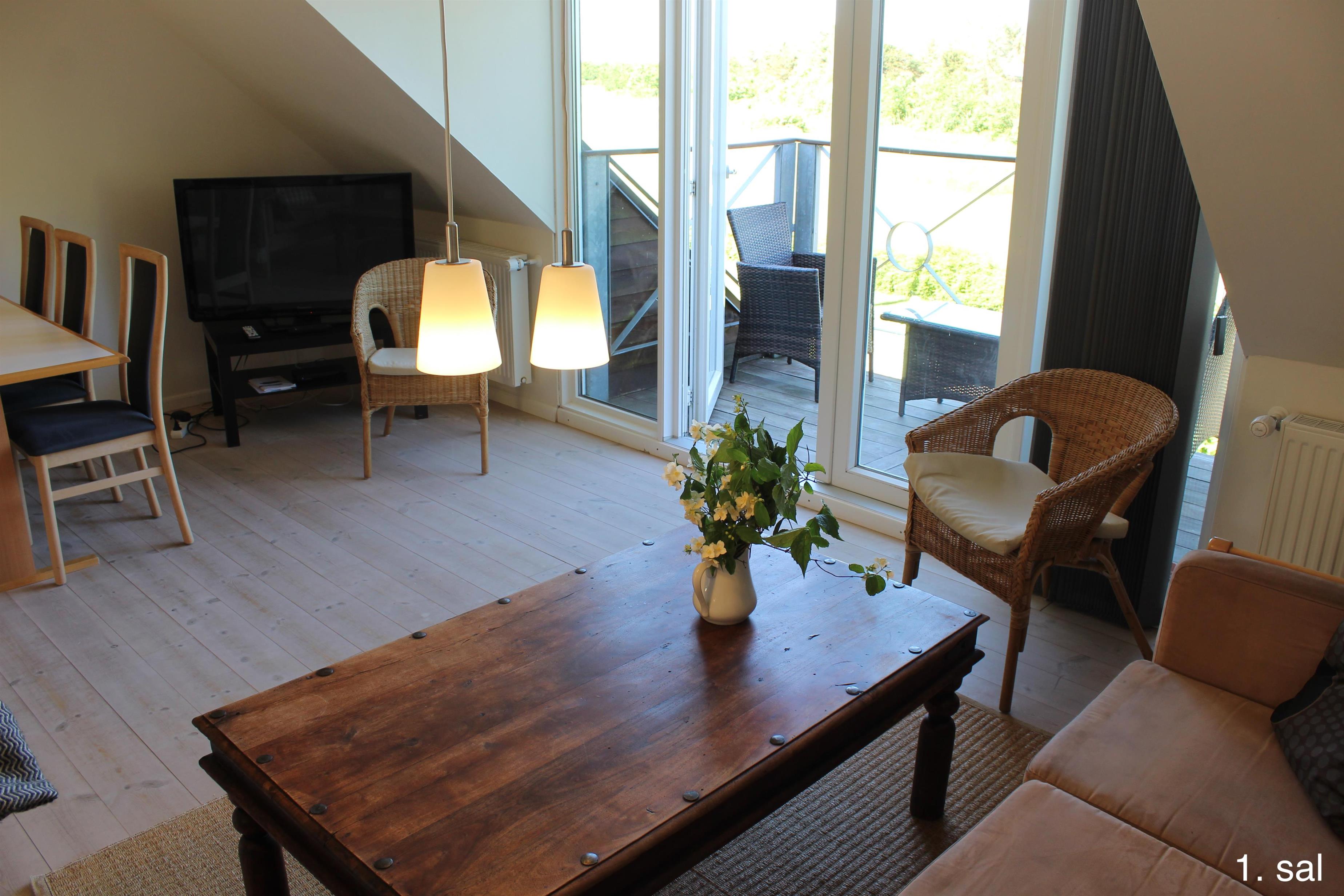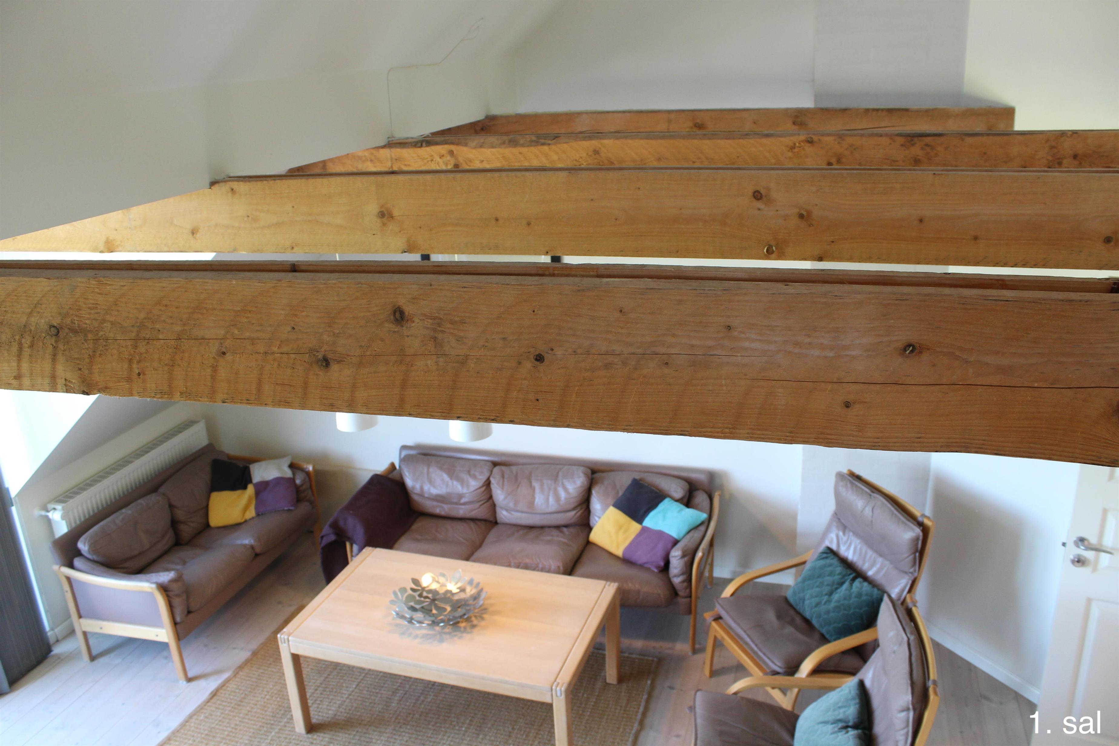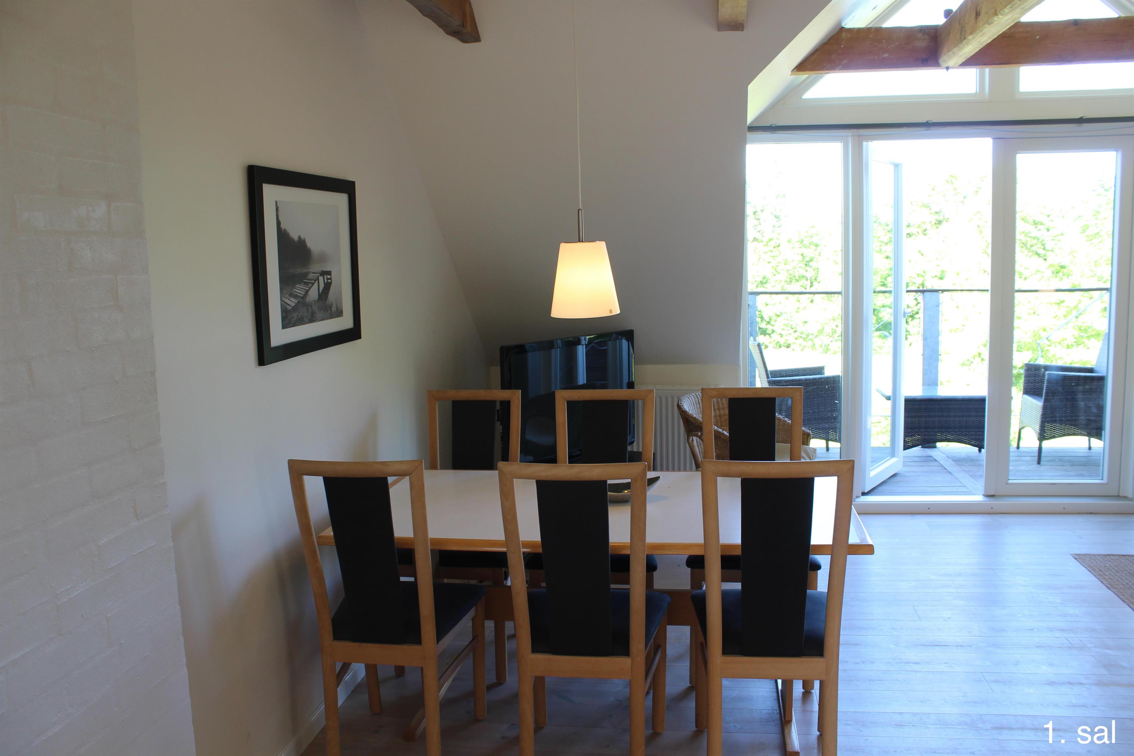 Im 1. Stock des Haupthauses befinden sich 2 Apartments mit 5 Doppelzimmern und 2 ausgebauten Dachböden mit insgesamt 8 Schlafplätzen sowie einem Badezimmer. Von beiden Wohnungen aus haben Sie Zugang zu einem kleinen Balkon mit Aussicht über den Filsø-See.