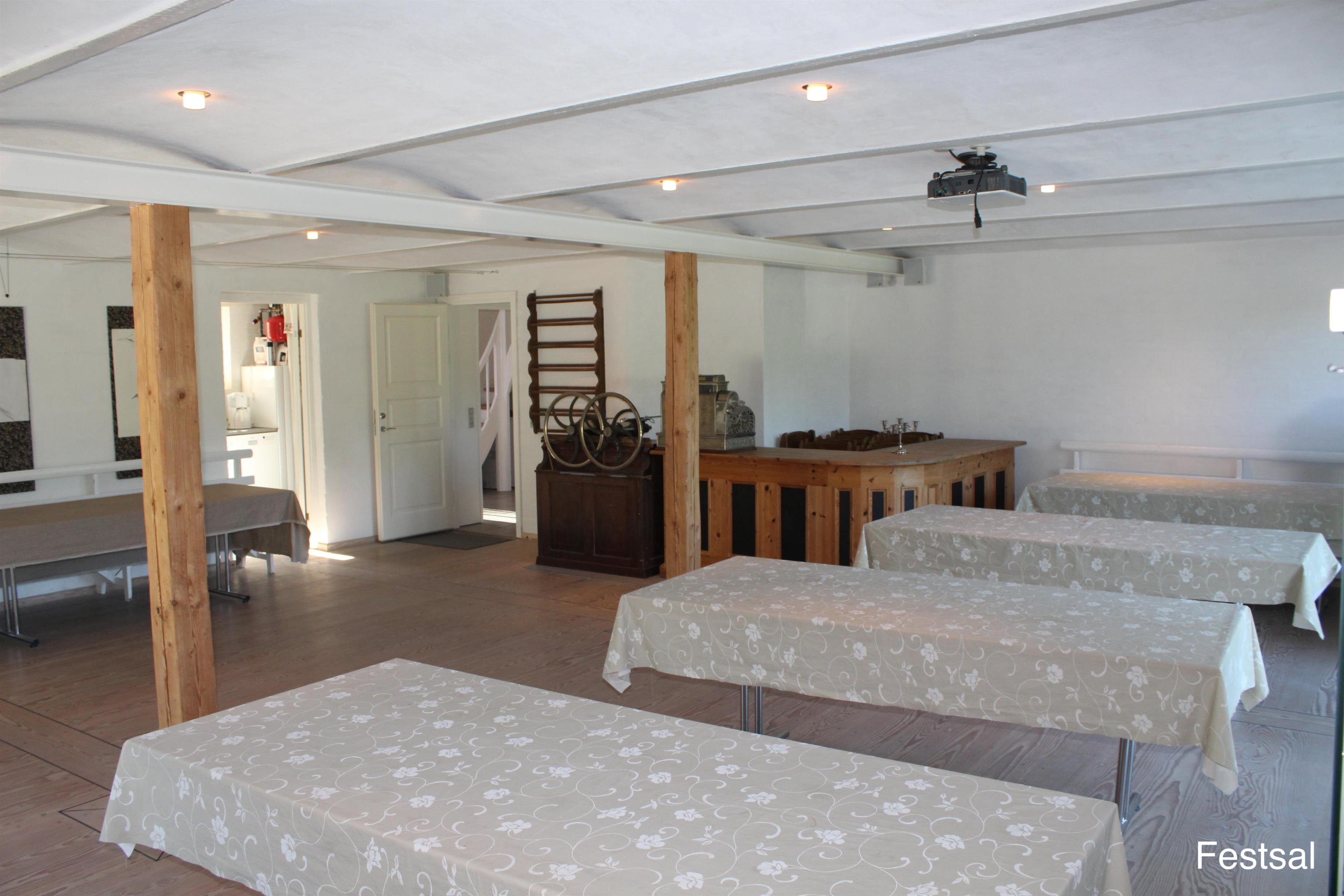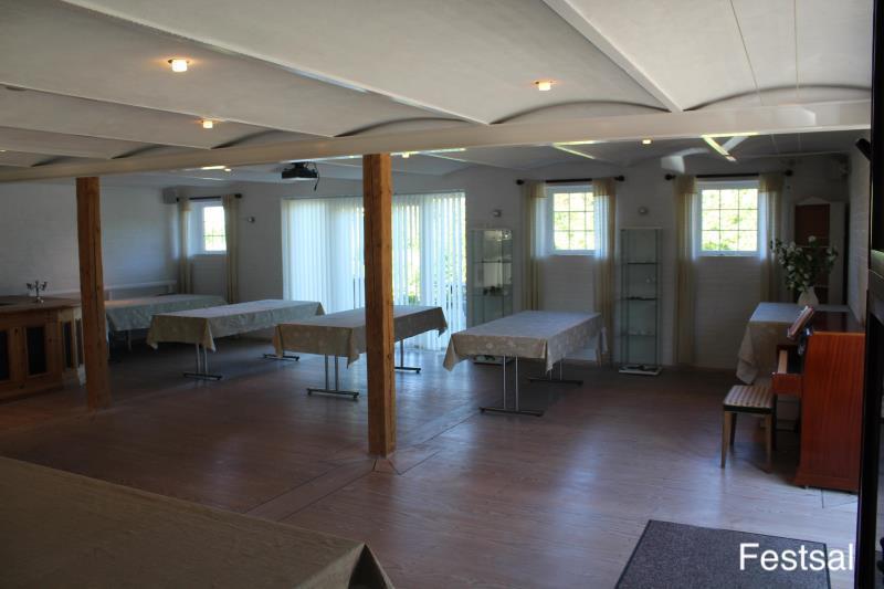 Ein 75 m2 großer Festsaal verbindet Haupthaus und Wohnung und kann mit Geshirr und alles zugemietet werden.