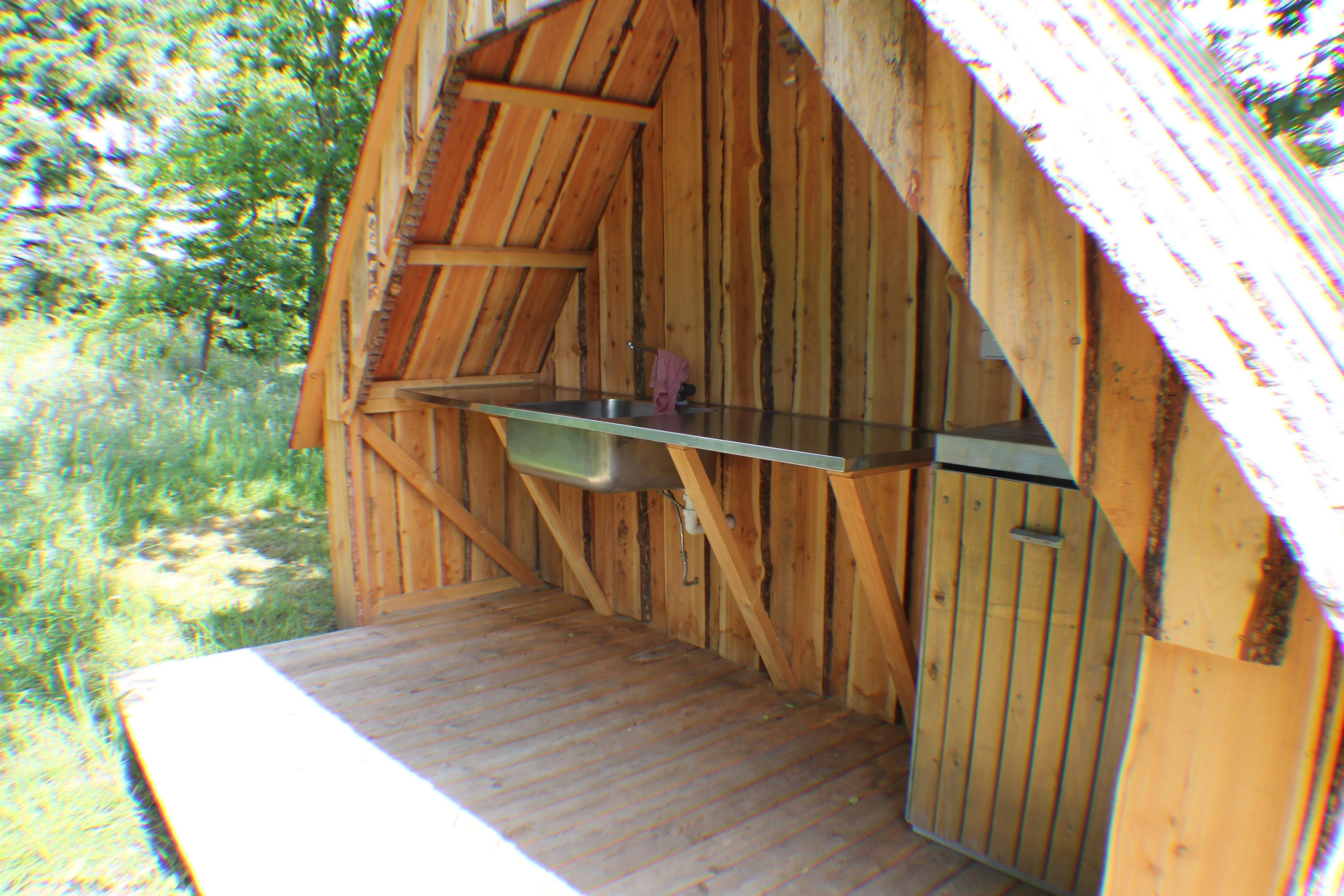 Das Haupthaus verfügt über einen Eingangsbereich, einem großen Badezimmer mit Whirlpool, Küche und einem Doppelzimmer.