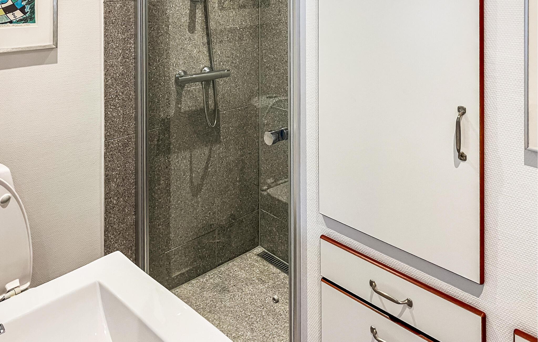 - WC mit warmem und kaltem Wasser, Dusche