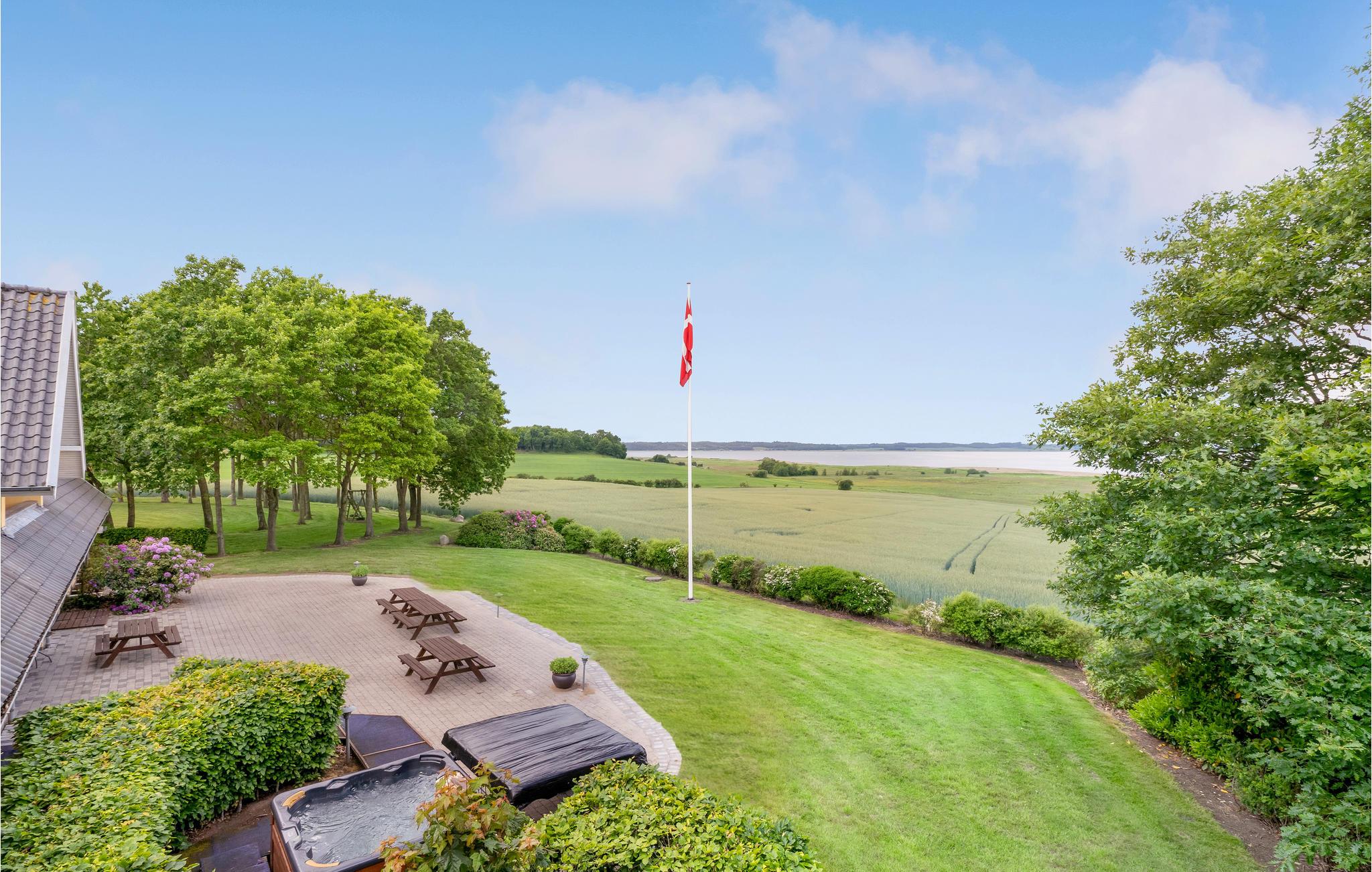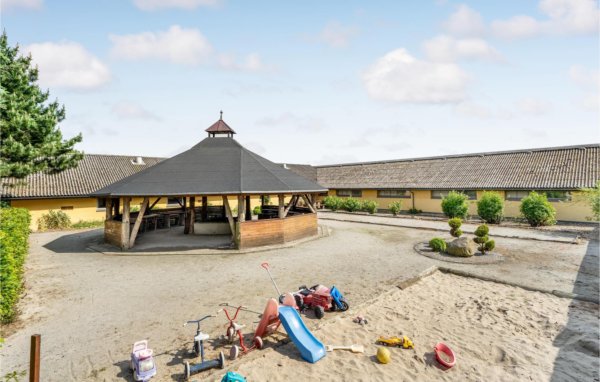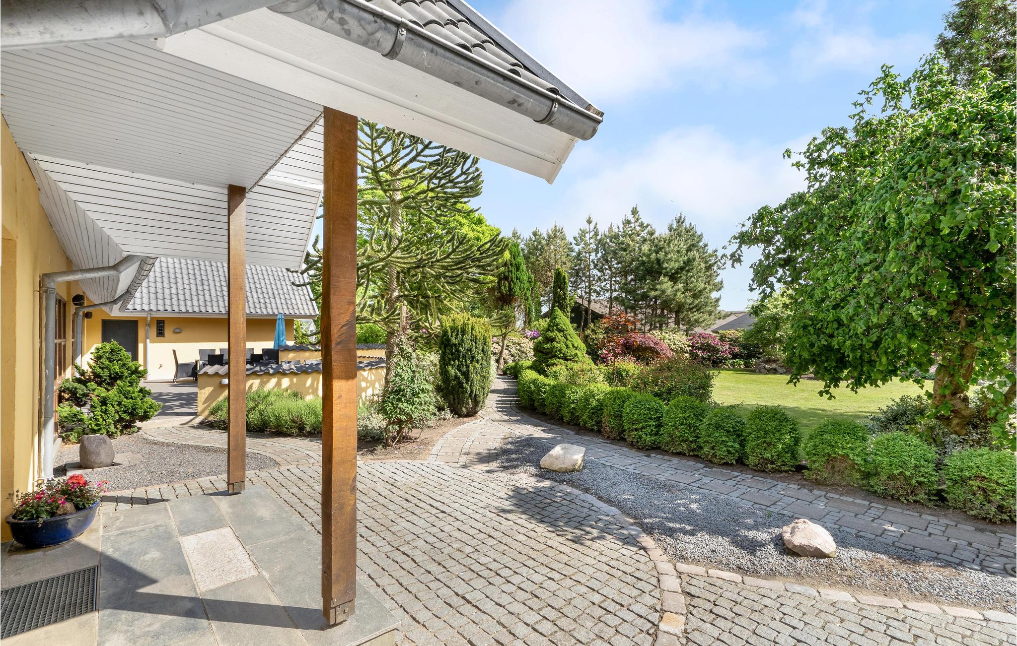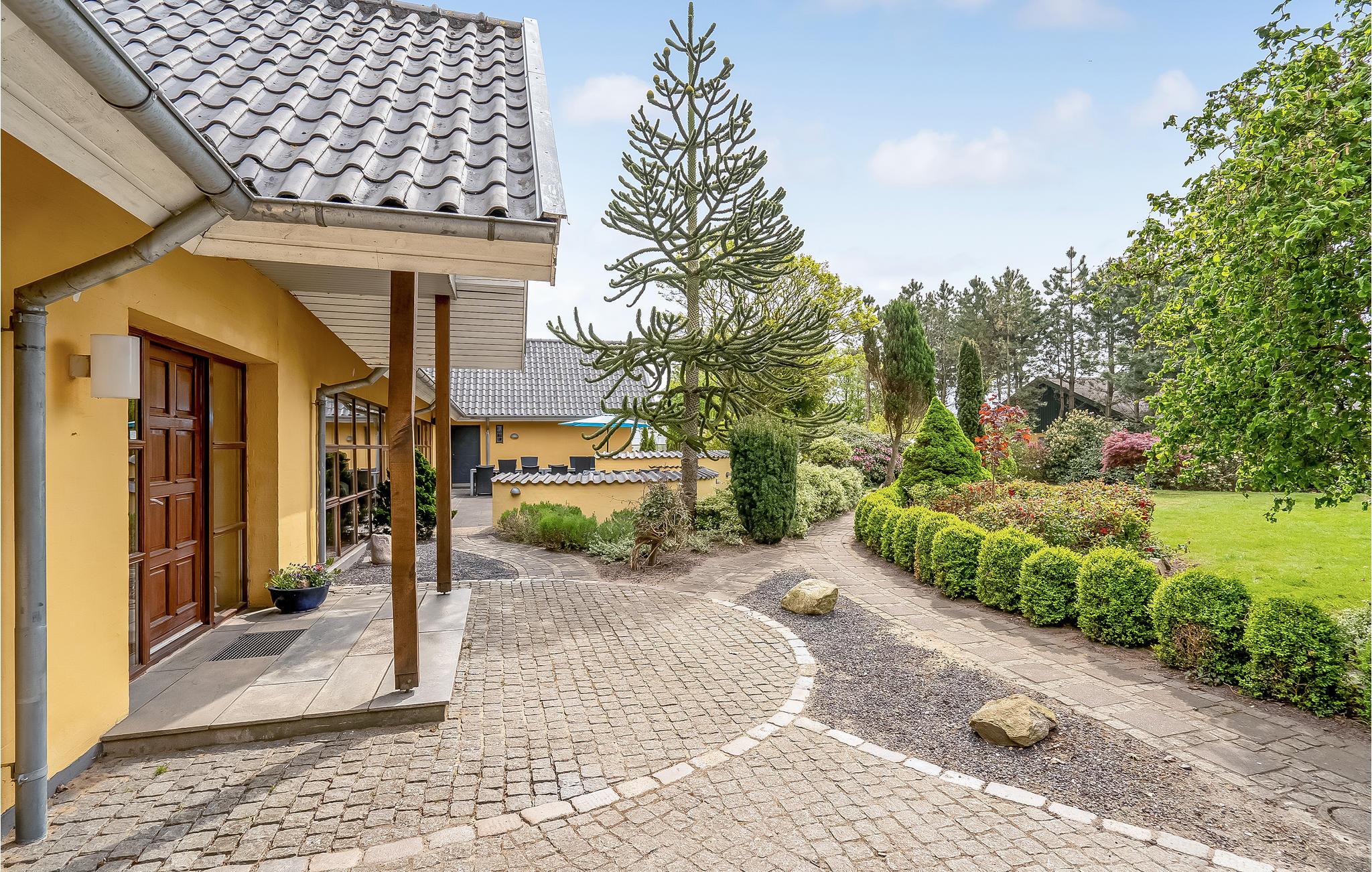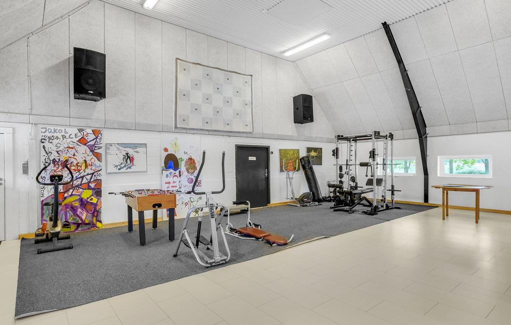 Großzügiges Ferienhaus in Hjarbæk mit Pool, Sauna, Aktivitätsräumen und idyllischem Garten für erholsame und aktive Urlaubstage.