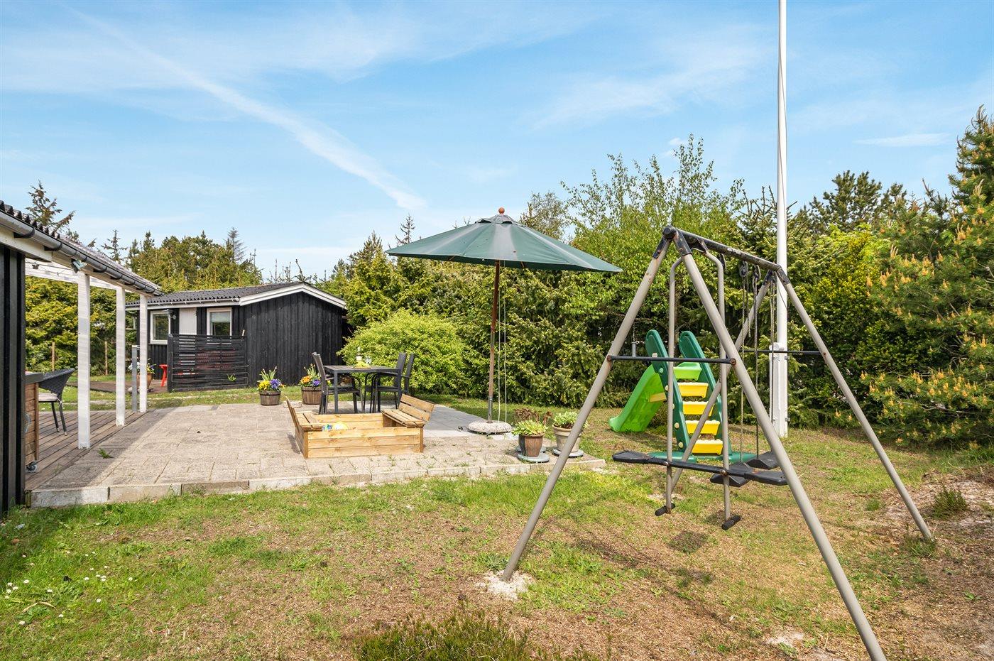 Die Ferienunterkunft liegt auf einem 737 m² großen Naturgrundstück. Das Grundstück ist eingezäunt. Die Entfernung zum Meer beträgt 300 m. Die nächste Einkaufsmöglichkeit liegt 3200 m entfernt. In einem Abstand von 5500 m gibt es einen Golfplatz. Es steht ein 30 m² Terrassenareal zur Verfügung. Außerdem gibt es 14 m² überdachte Terrasse. Schaukel. Rutsche. Parkplatz auf dem Grundstück.