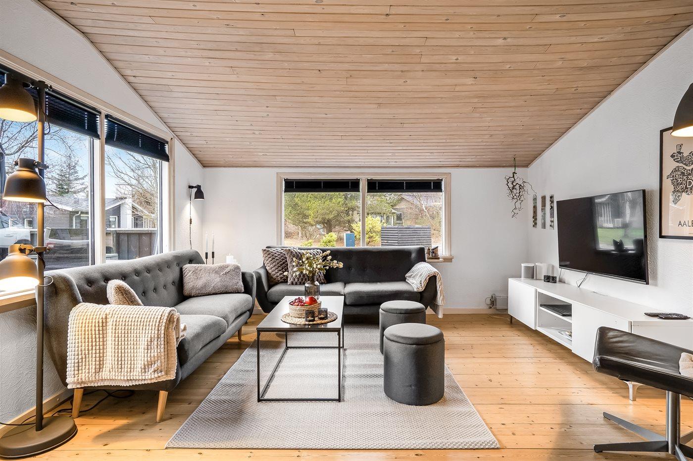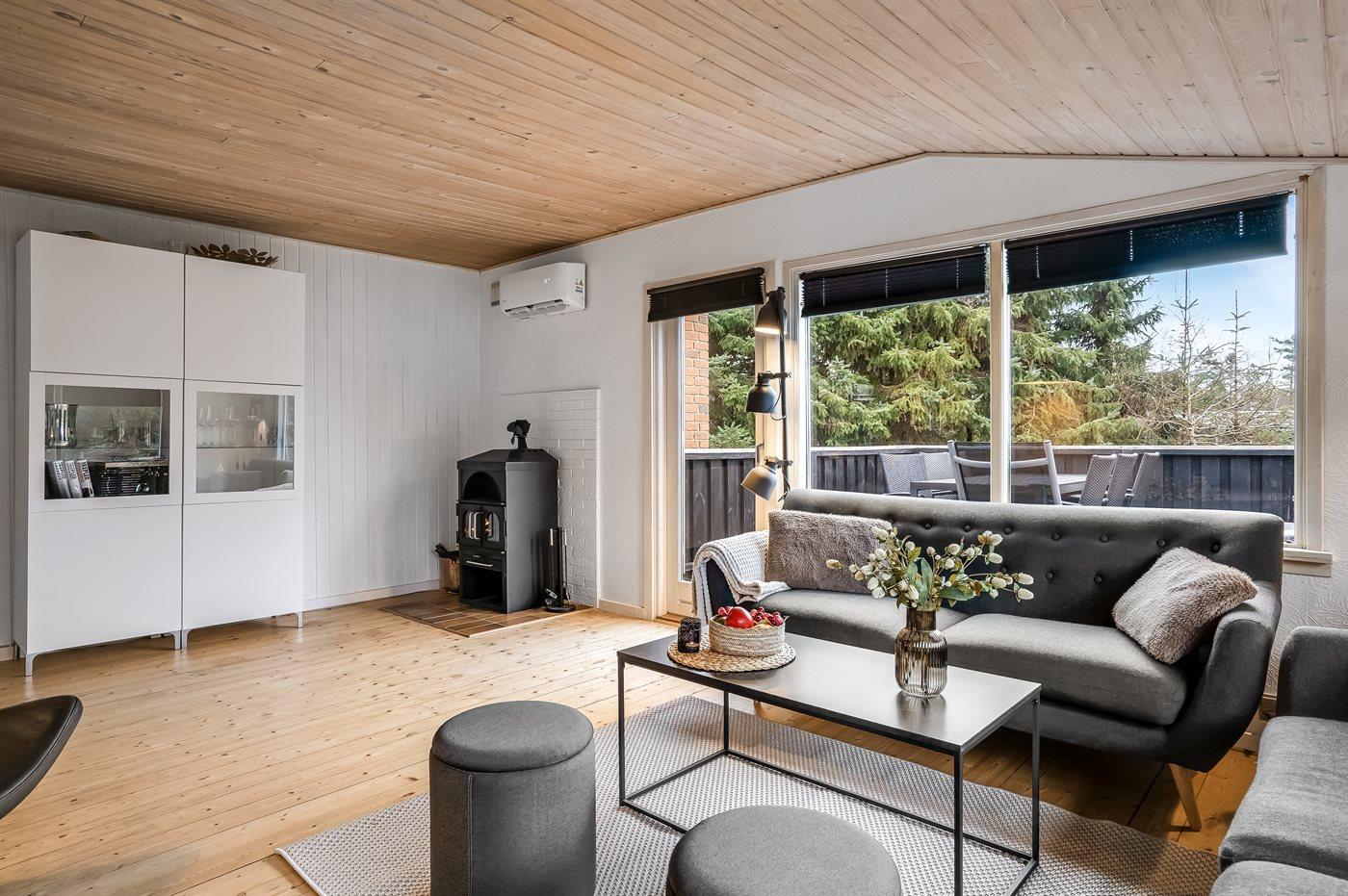 Gemütliches Ferienhaus nahe dem kinderfreundlichen Strand von Hals mit Terrasse, Kamin und Meerblick.