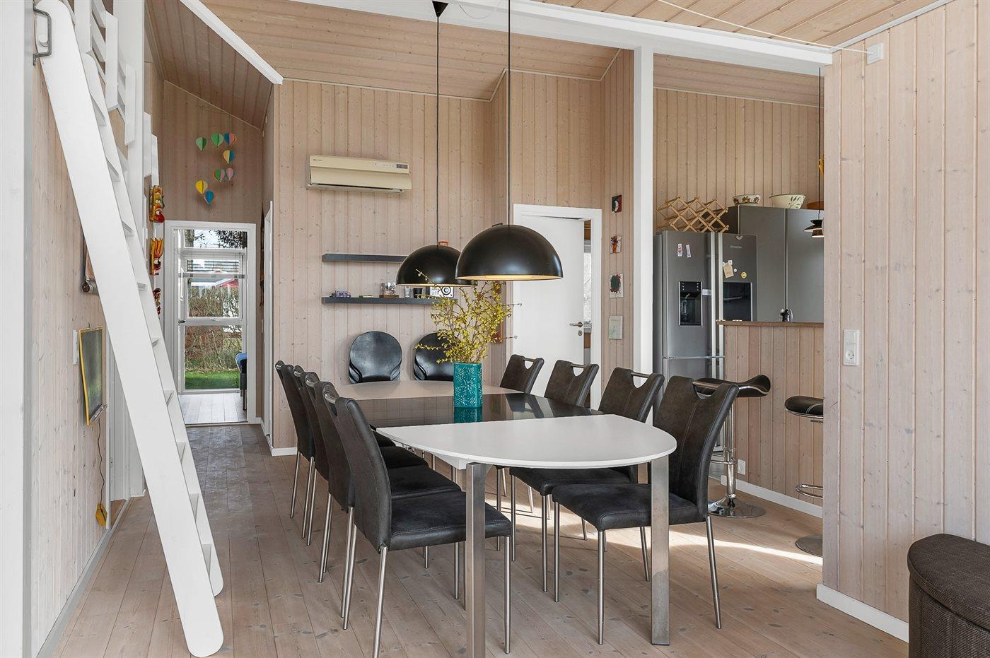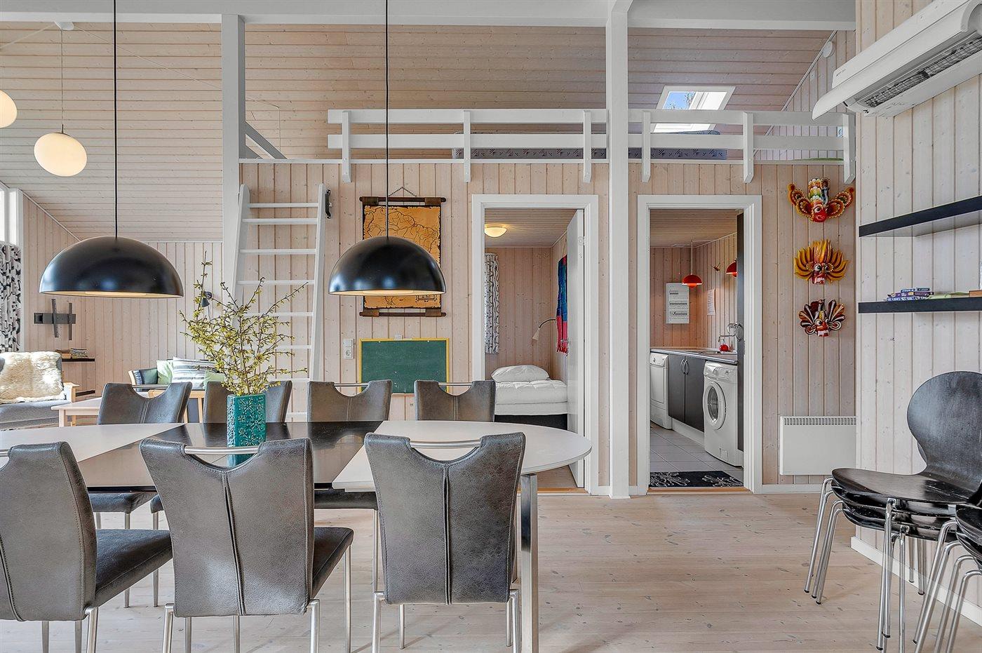 Das Ferienhaus eignet sich für 10 Personen sowie 1 Kleinkind bis zu 3 Jahren. Die Ferienunterkunft hat eine Wohnfläche von 96 m² und wurde 2010 gebaut. 2026 wurde die Ferienunterkunft teilweise renoviert. Es ist erlaubt 2 Haustiere mitzubringen. In der Ferienunterkunft ist eine energiesparende Luft zu Luft Wärmepumpe installiert. Die Ferienunterkunft ist mit Waschmaschine ausgestattet. Wäschetrockner. Tiefkühlmöglichkeit mit 75 Liter Nutzinhalt. Es gibt außerdem einen Kaminofen. Für die jüngsten Feriengäste ist 1 Kinderhochstuhl vorhanden.