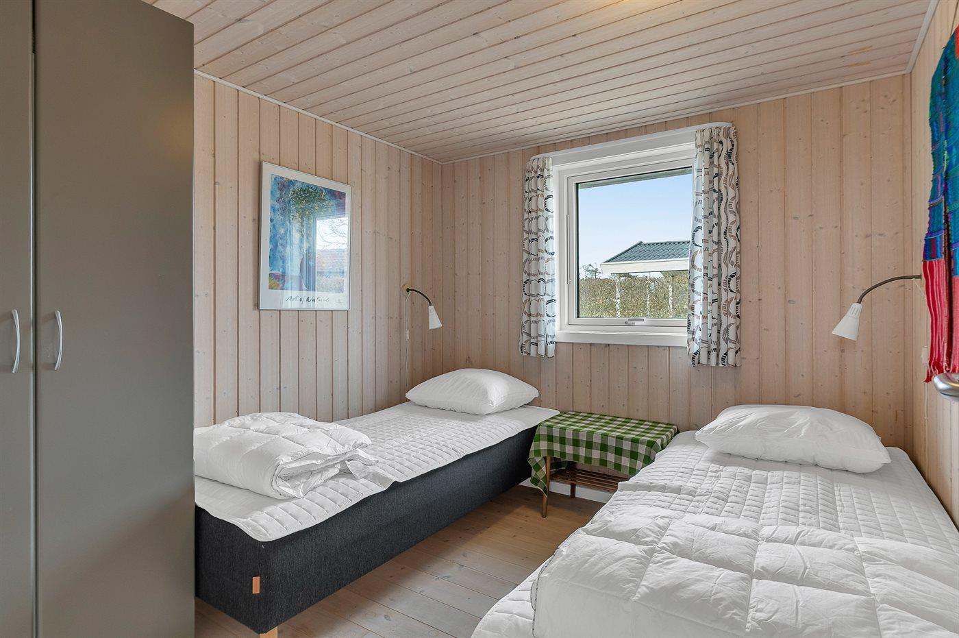 Es gibt mehrere Schlafmöglichkeiten, denn neben den Schlafzimmern gibt es sowohl ein offenes Obergeschoss als auch ein Gästehaus. Das Gästehaus ist mit zwei Einzelbetten ausgestattet, zwischen denen du eine Platte mit zusätzlicher Matratze legen kannst, sodass Platz für 3 Personen entsteht. Eines der Schlafzimmer ist mit einem Einzelbett und zwei versetzten Etagenbetten eingerichtet – etwas, das bei den Kindern sehr beliebt ist.