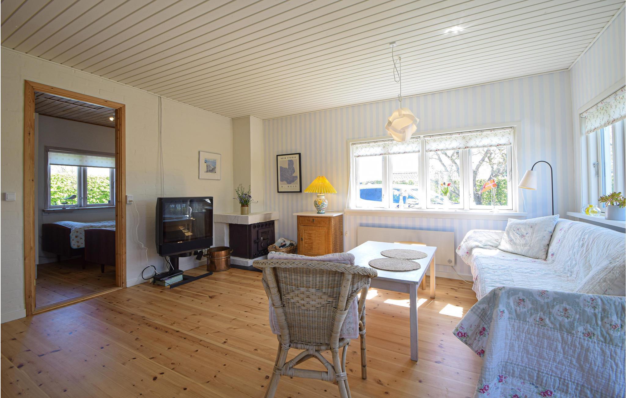Hier sehens Sie ein sonniges Sommerhaus, das nur ca. 100 Meter vom Meer und Strand entfernt liegt. Das Haus hat eine Wohnfläche von fast 50 m² und liegt auf einem Grundstück mit viel Platz zum Ballspielen. Sie können auch auf der Terrasse und in den bequemen Sonnenliegen entspannen.