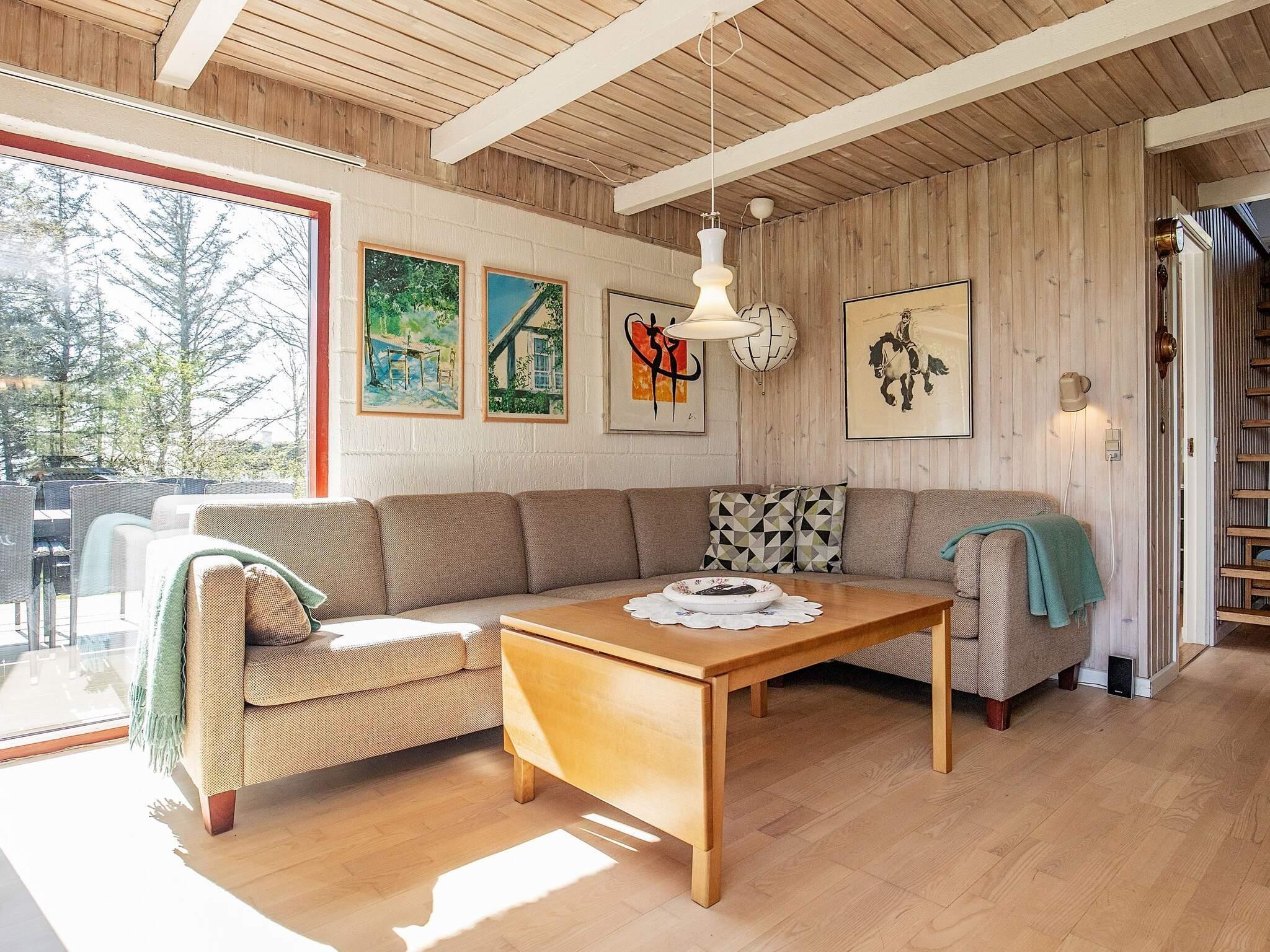 Das Ferienhaus hat zwei Wohnebenen mit teils herrlichem Ausblick von mehreren Zimmern auf beiden Etagen. Oben im Dachgeschoss liegt ein großes Wohnzimmer mit geschütztem Balkon und besonders attraktiver Ausssicht! Im Parterre findet man zudem einen offenen Wohn-/Essbereich mit integrierter Küche. Zur Einrichtung im Wohnbereich gehören u.a. WLAN, TV, Chromecast, DVD-Player, Sitzecke, Holzofen und Bluetooth-Lautsprecher. Auch vom Essbereich vorne an der großen Fensterfront hat man großartige Aussicht.
