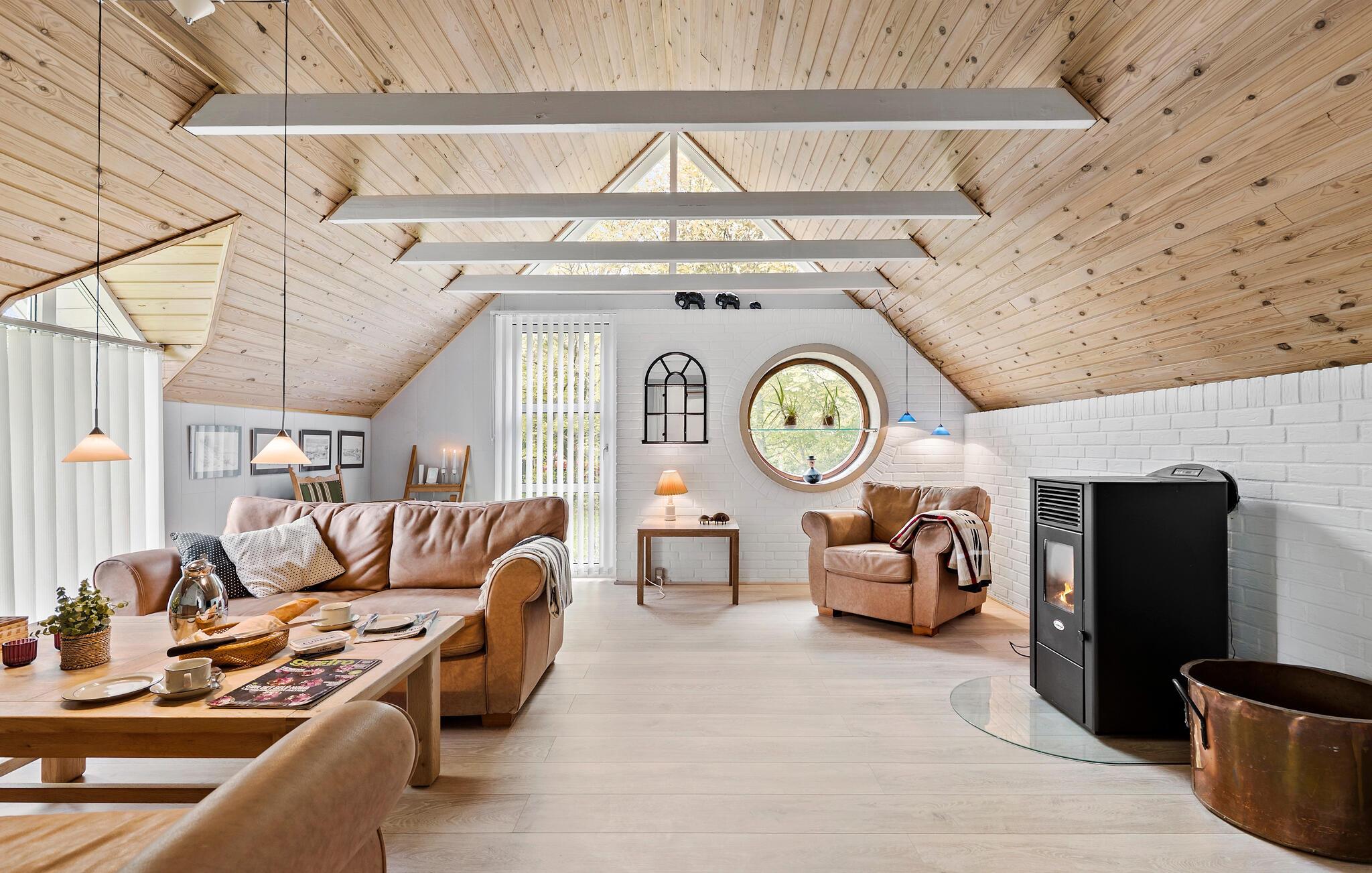 Willkommen in diesem gemütlichen und charmanten Ferienhaus, das Ihnen auf der Insel Jegindö den idealen Ort zum Erholen bietet. Fühlen Sie sich hier direkt wie zuhause und genießen das Ambiente und die Besonderheiten des Hauses. Ein Rundes Fenster, sichtbare Deckenbalken und eine ansprechende Einrichtung laden Sie hier ein Ihren Ferienalltag beim Kochen, Essen, Spielen oder Filmschauen zu genießen.