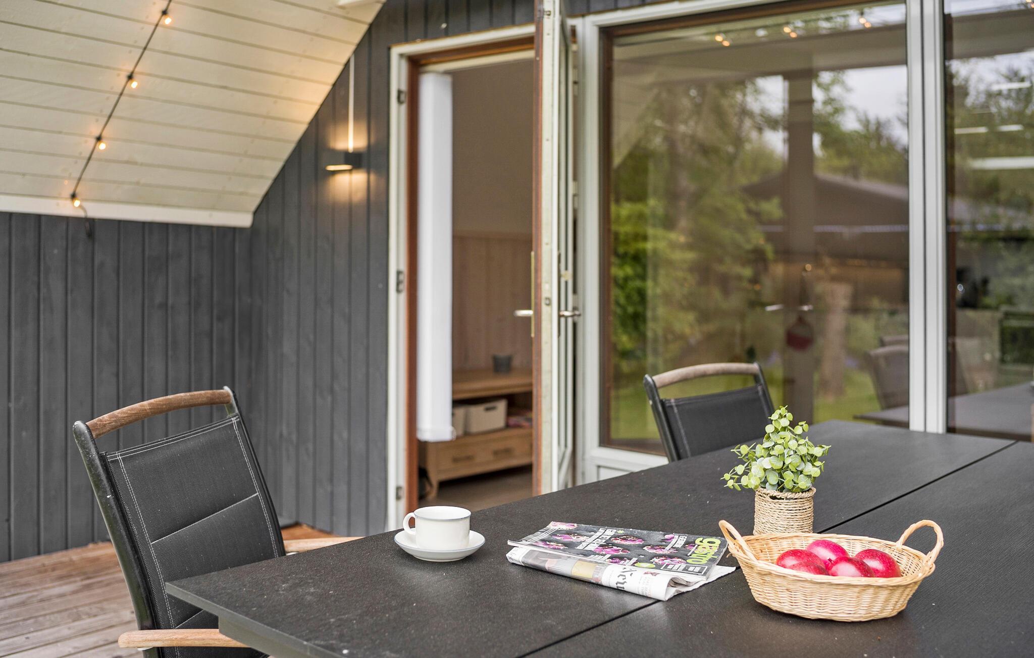 Lassen Sie die lauen Sommerabende auf der überdachten Terrasse ausklingen und plaudern im Schein der Lichterkette.