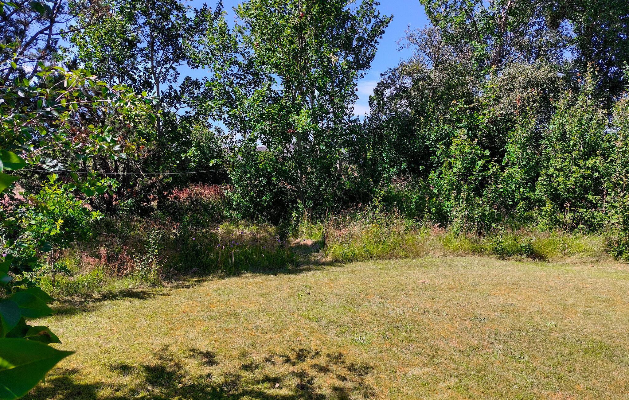 Treten Sie aus der Küche ins Freie und genießen Sie auf dem Naturgrundstück eine Tasse Kaffee und die ersten Sonnenstrahlen.