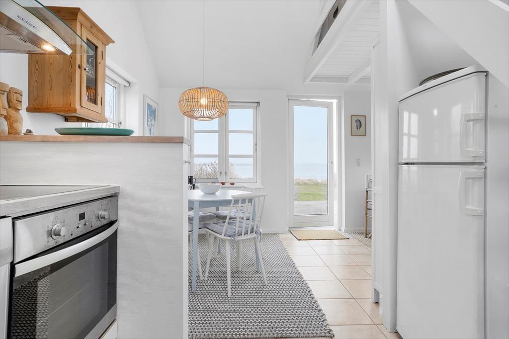 Willkommen in dieser einzigartigen Perle, bei der Sie mit den Füßen förmlich an der Wasserkante stehen und mit einer fantastischen Aussicht über die Bucht von Juelsminde verwöhnt werden. Zwei Personen genießen hier viel Zweisamkeit und eine wunderbare Pause vom hektischen Alltag. Das Ferienhaus präsentiert sich ausgesprochen gepflegt. Das Innere wirkt dank der hohen Decken angenehm hell und freundlich. Schönste Ferienhausatmosphäre erwartet Sie im großen, offen kombinierten Küchen- und Wohnbereich, in dem Sie sich bereits früh am Morgen bei einem guten Frühstück entspannen. Die fantastische Aussicht und die leise an den Strand schwappenden Wellen bilden dabei eine wunderschöne Kulisse. Das Ferienhaus beinhaltet einen guten Schlafraum mit einem Doppelbett und einen großen, hellen Schlafboden mit einem ausziehbaren Einzelbett. Das angenehm große Badezimmer überzeugt mit einer gemauerten Duschkabine. Für behagliche Temperaturen sorgt eine Fußbodenheizung.