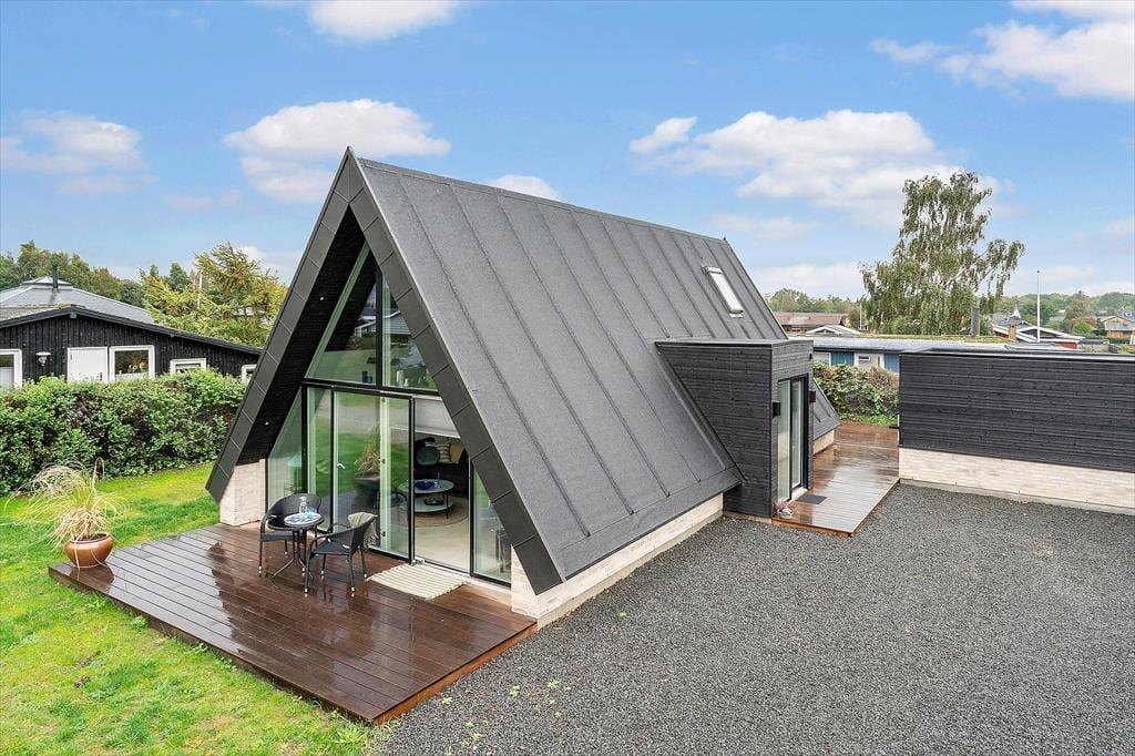 Dieses schöne und moderne Ferienhaus begrüßt Sie in einem der besten Ferienhausgebiete Juelsmindes.