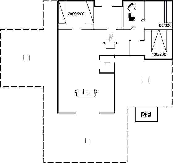 Die Schlafplätze verteilen sich auf 3 Schlafräume. 2 Schlafplätze in einem Doppelbett. 2 Schlafplätze in Einzelbetten. 2 Schlafplätze in einem Etagenbett. Ferner steht ein Kinderbett zur Verfügung.