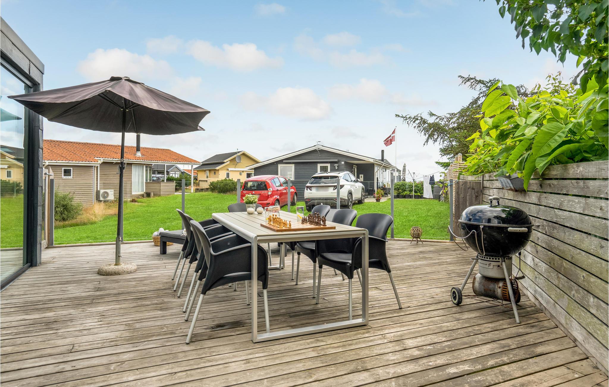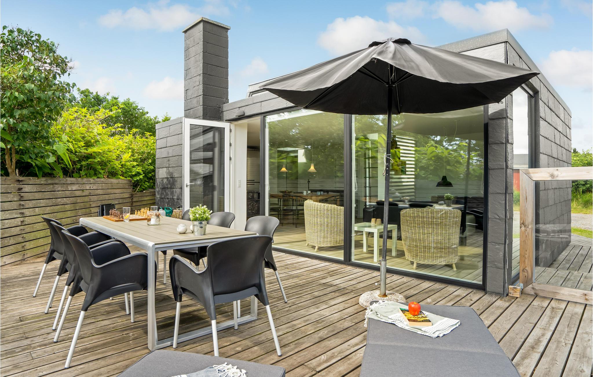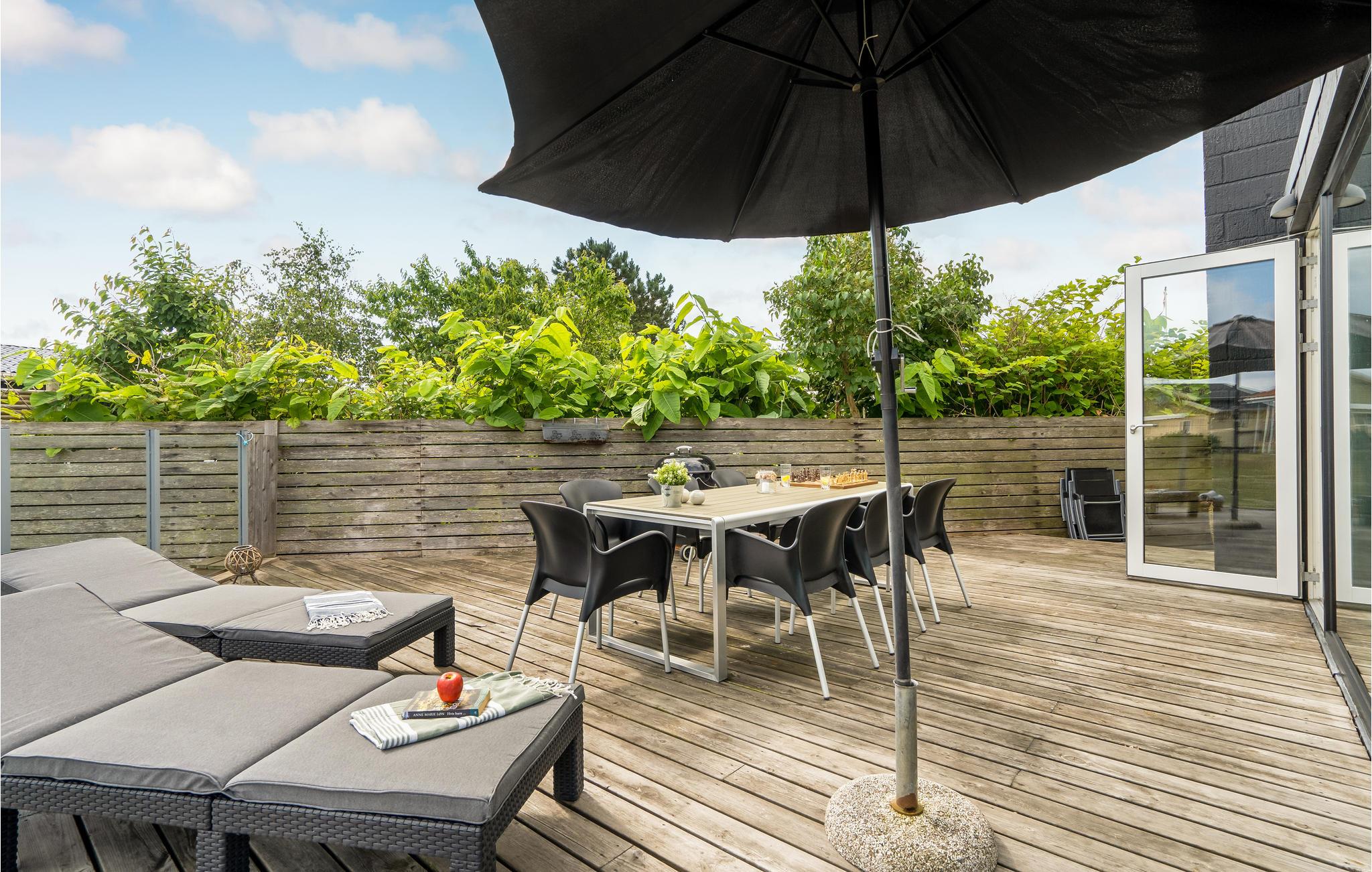 Vom Wohnzimmer aus gelangen Sie auf die geschlossenen Terrassen mit Gartenmöbeln. Hier finden Sie mehrere Ecken, wo Sie sich beim Brettspielen oder Ihrem Lieblingsbuch unterhalten können. Zünden Sie gegend Abend den Grill an und bereiten Sie ein leckeres Sommergericht für die übrigen Gäste zu - hier lässt sich die langen, hellen Abende in vollen Zügen genießen.
