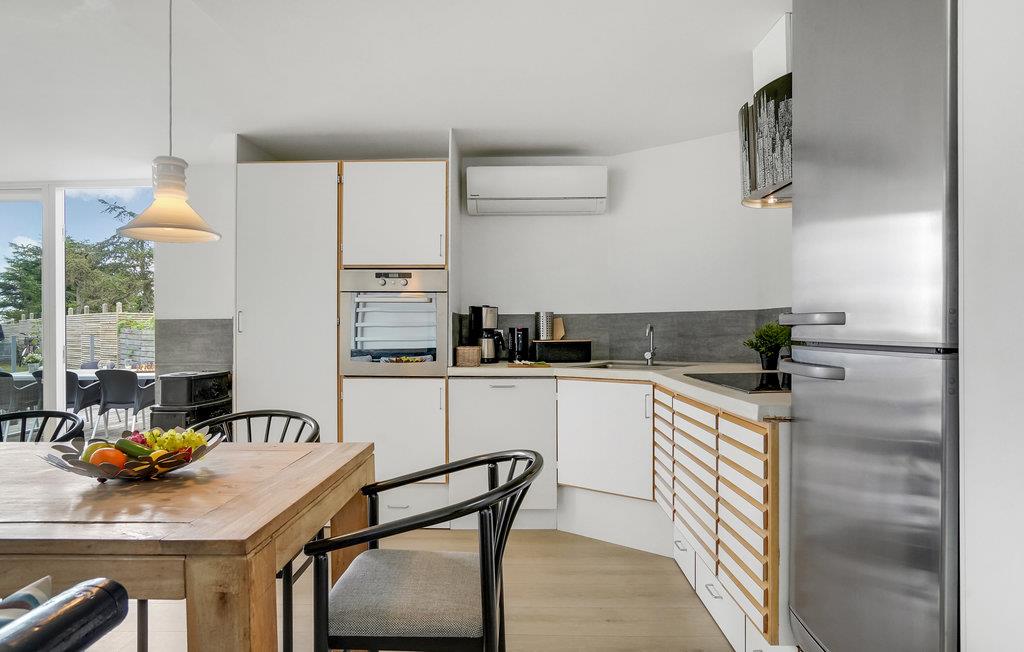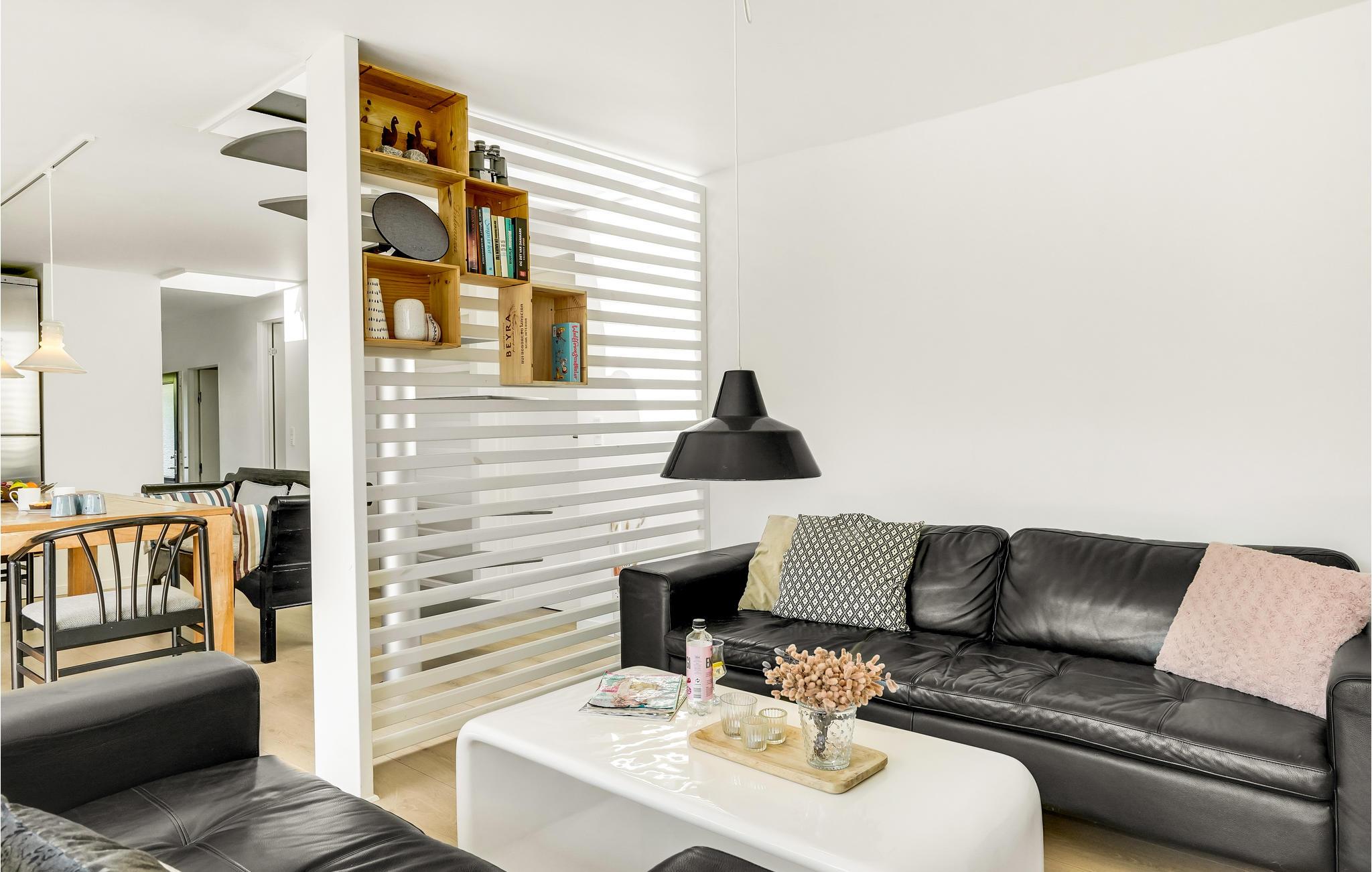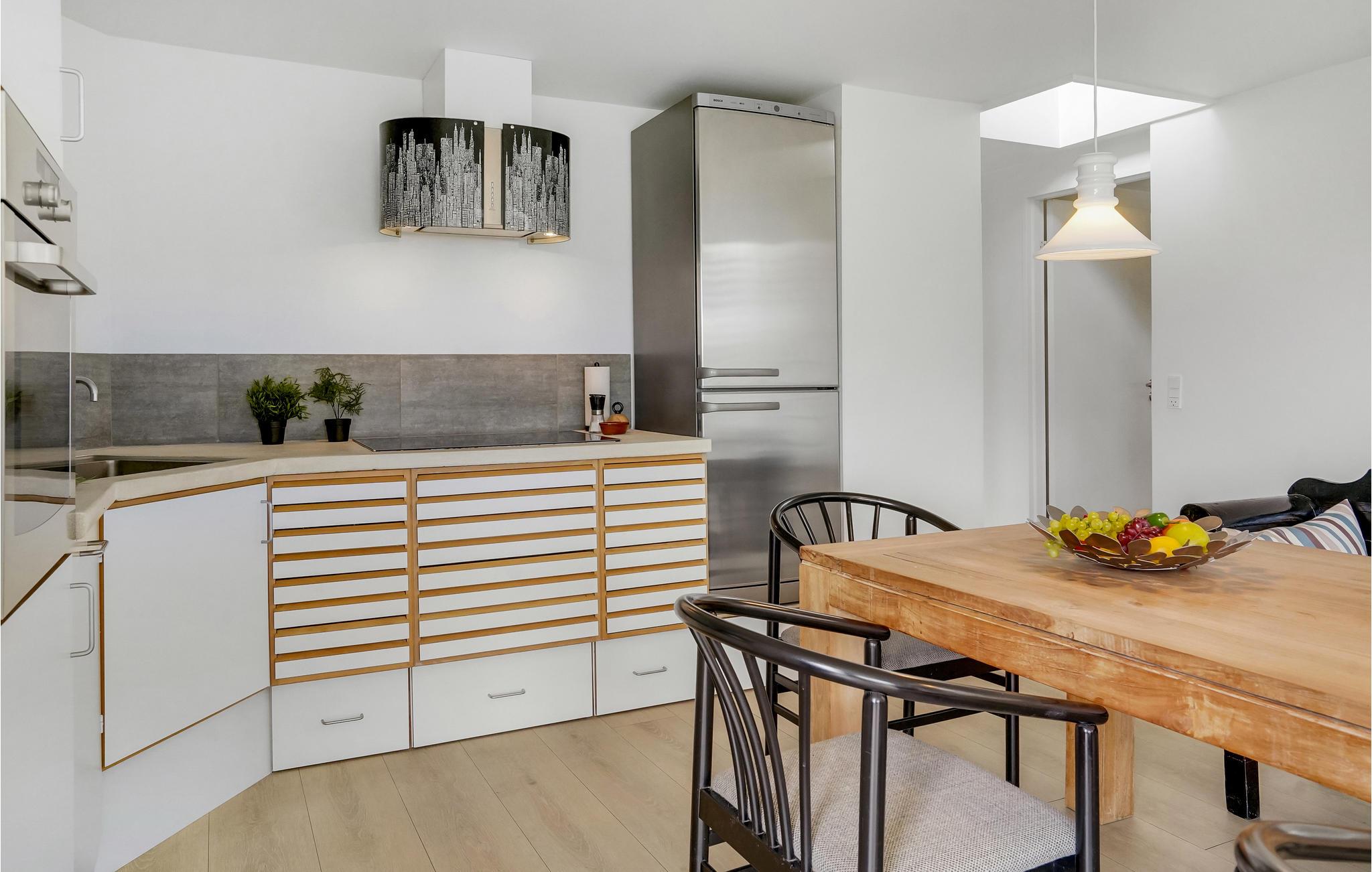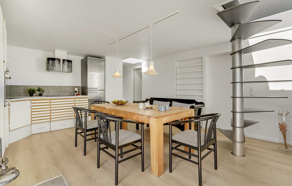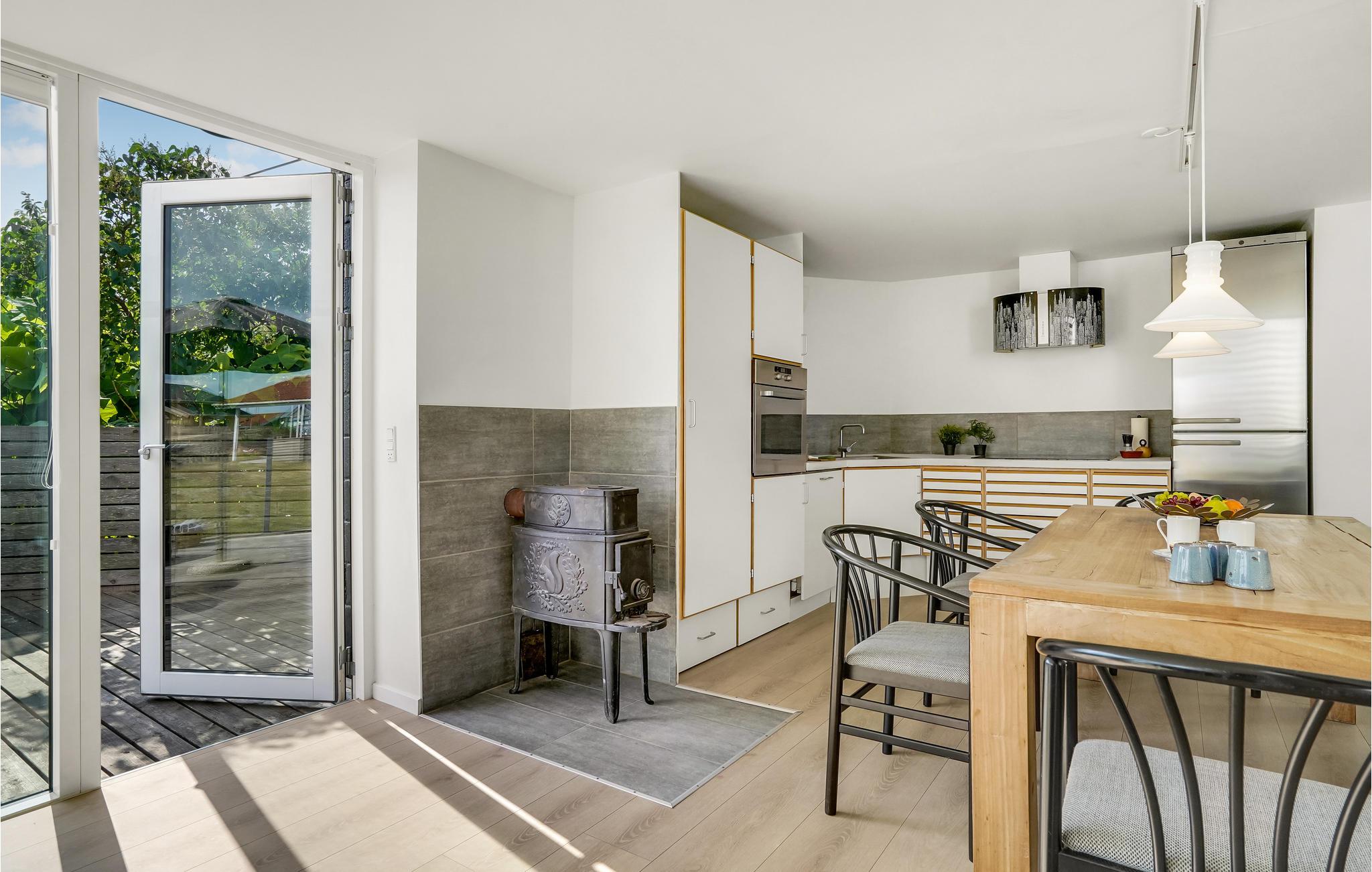Wenige Schritte vom Wasser entfernt finden Sie in Juelsminde dieses hübsche und orginal gestaltete Schieferhaus. Es ist aus dem Jahr 1937, macht aber einen gepflegten und sehr modernen Eindruck. Durch die Fensterfront fällt selbst an bewölkten tagen viel Licht ins hell eingerichtete Wohnzimmer und bewirkt ein sehr angenehmes Raumgefühl. In den oberen Etagen lädt die offene Dachfront Sie ein, den Blick über das Meer schweifen zu lassen und bei klarem Wetter den Sternenhimmel zu beobachten.