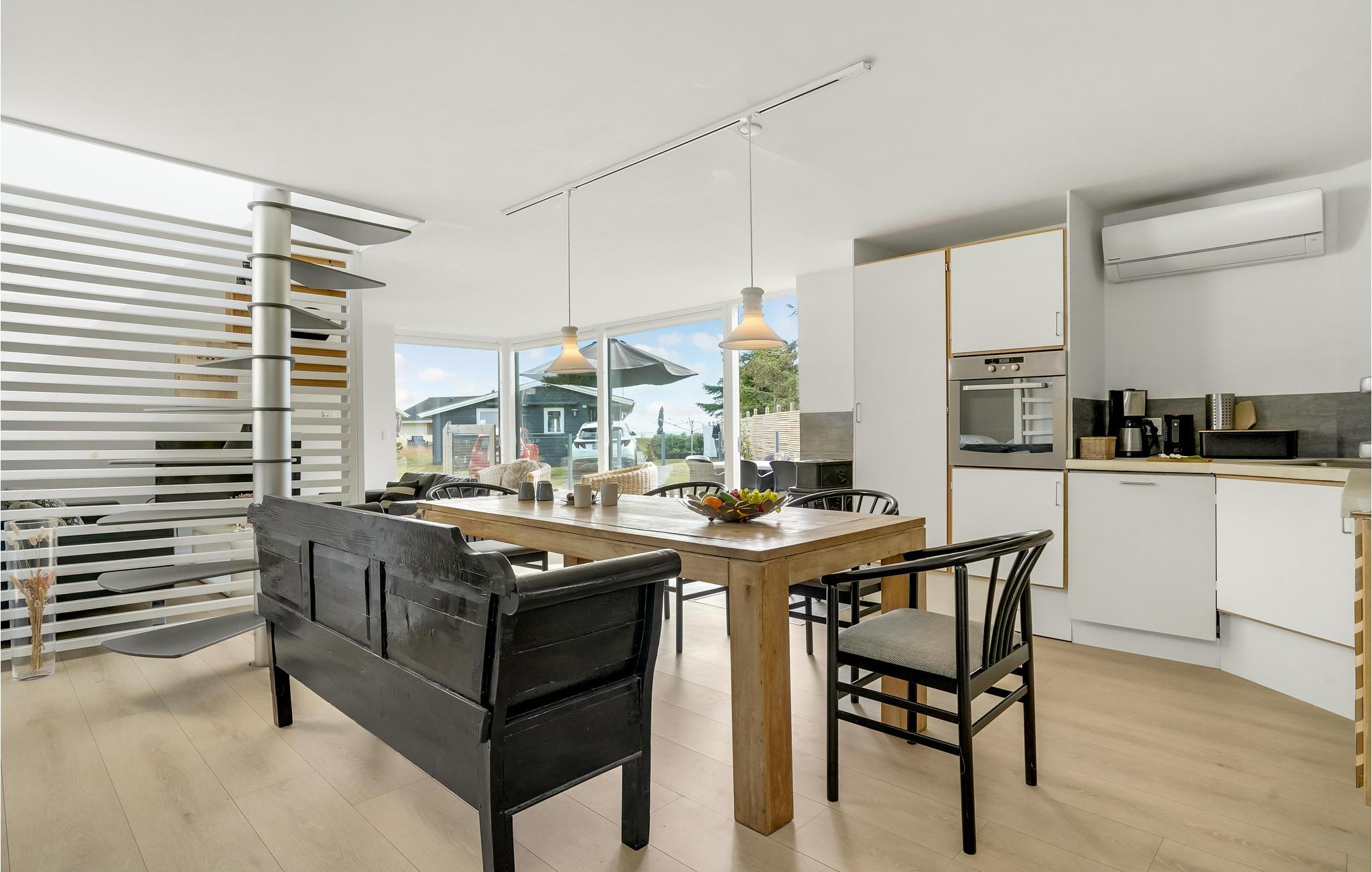 Modernes, orginales Ferienhaus mit Meerblick, nur 80 m vom Sandstrand gelegen.