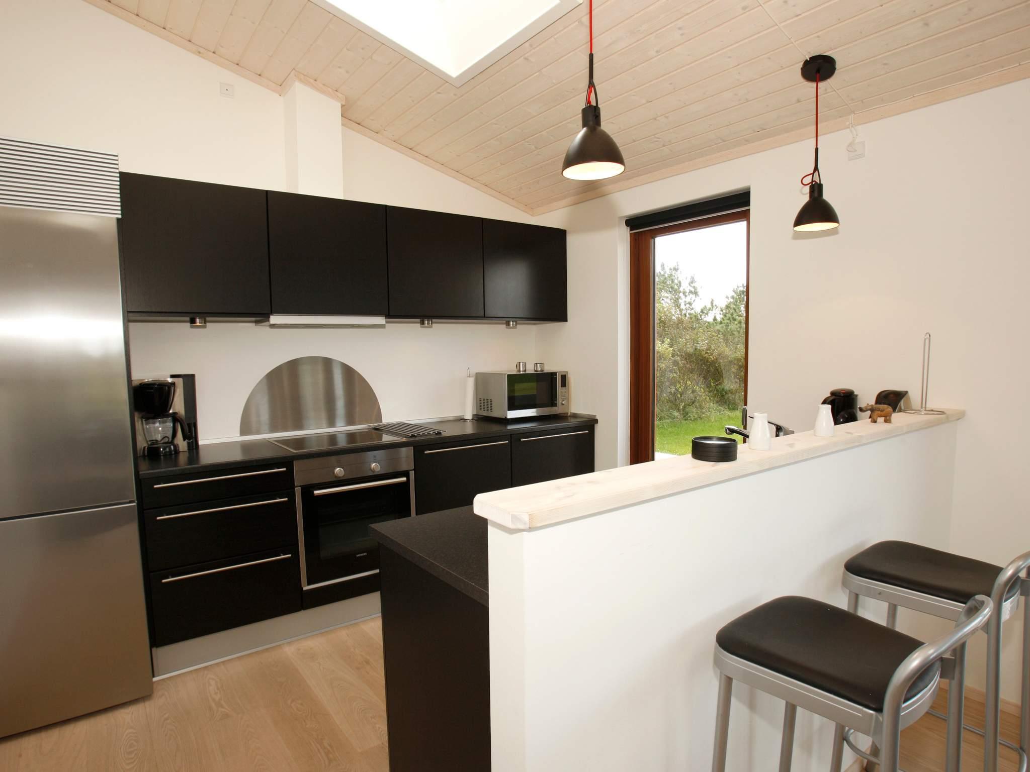 Zum Haus gehört sowohl eine große offene als auch eine überdachte Terrassenfläche. Dort kann man immer ein geschütztes Plätzchen finden, um die Aussicht über den Limfjord zu genießen, während das Abendessen auf dem Grill zubereitet wird. Eine praktische Außenküche an der Terrasse rundet das Kochvergnügen im Freien ab.