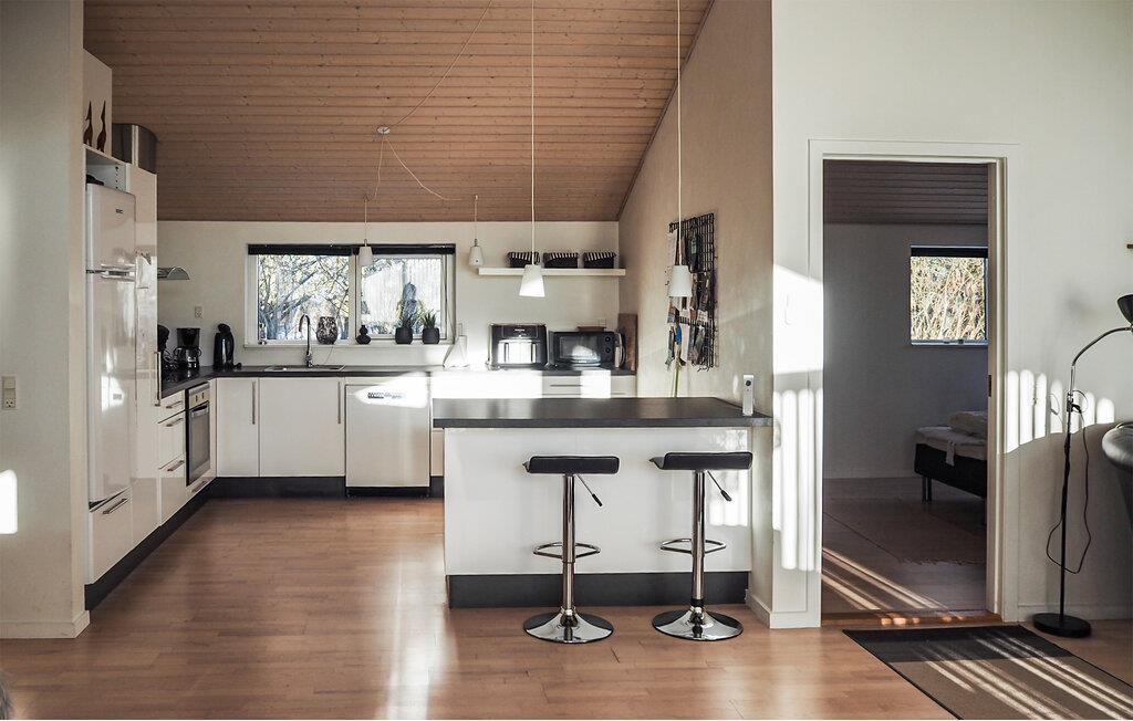 Helles und freundliches Ferienhaus mit zeitloser Einrichtung. Das Haus hat eine angenehme Atmosphäre und ist der ideale Ort zum Entspannen und Wohlfühlen. Besonders die große und z. T. überdachte Terrasse muss an dieser Stelle erwähnt werden, denn hier werden Sie viele laue Sommerabende genießen. Das Haus liegt in der ruhigen Ferienhausgegend Kærgården, unweit der kleinen Stadt Vestervig. Vestervig besitzt die älteste Dorfkirche Dänemarks und gute Geschäfte und Lokale. Im nahe gelegenen Fischerdorf Agger haben Sie die Gelegenheit Ihre Angel auszuwerfen und das Abendessen zu fangen.