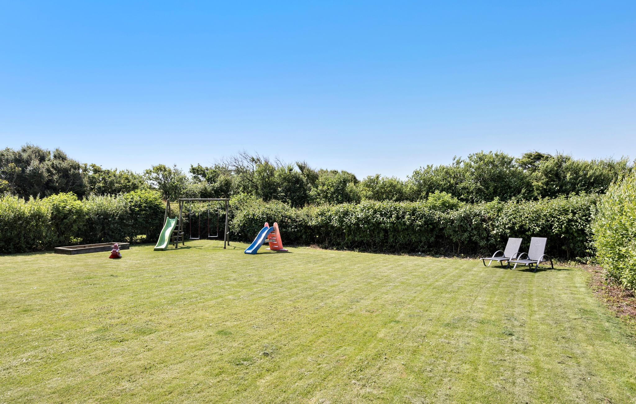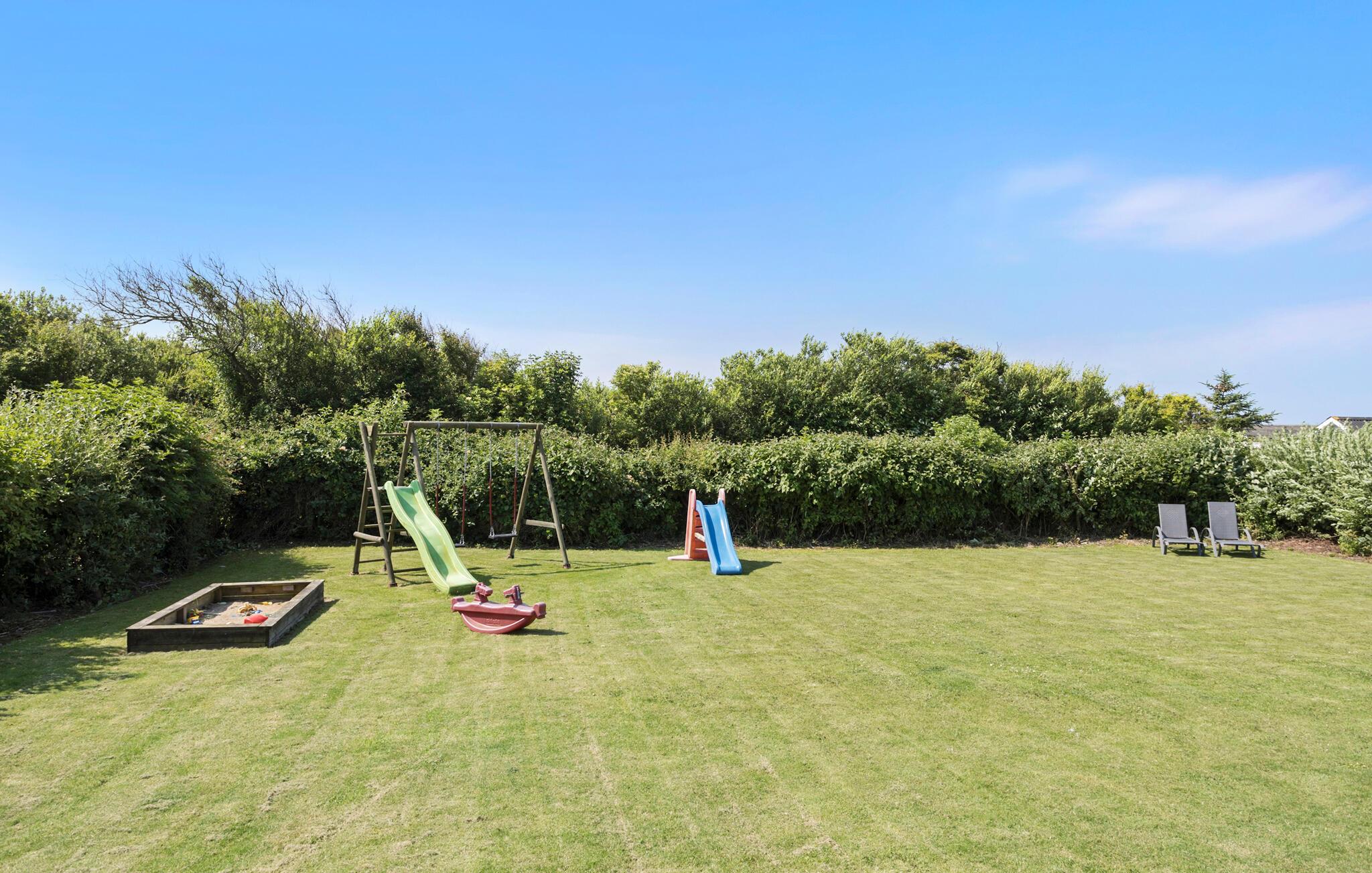 Willkommen am Kærgården Strand an der Bucht Krik Vig. Hier ist es nicht weit bis zur nächsten Bademöglichkeit. Und auch die schönen Nordseestrände liegen nur eine kurze Autofahrt von Ihrem Ferienhaus entfernt. Ihr Ferienhaus besticht durch seine helle und freundliche Atmosphäre. Der gemütliche Wohnbereich ist mit bequemen Möbeln ausgestattet. Bereiten Sie Ihr Frühstück in der gut ausgestatteten Küche zu und genießen Sie es auf der sonnigen Terrasse. Diese bietet Ihnen einen schönen Blick auf den großzügigen Garten, wo sich Ihre Kinder auf die Rutschen, Schaukeln und den Sandkasten freuen können. Hier ist auch viel Platz zum Fußballspielen und Herumtoben.