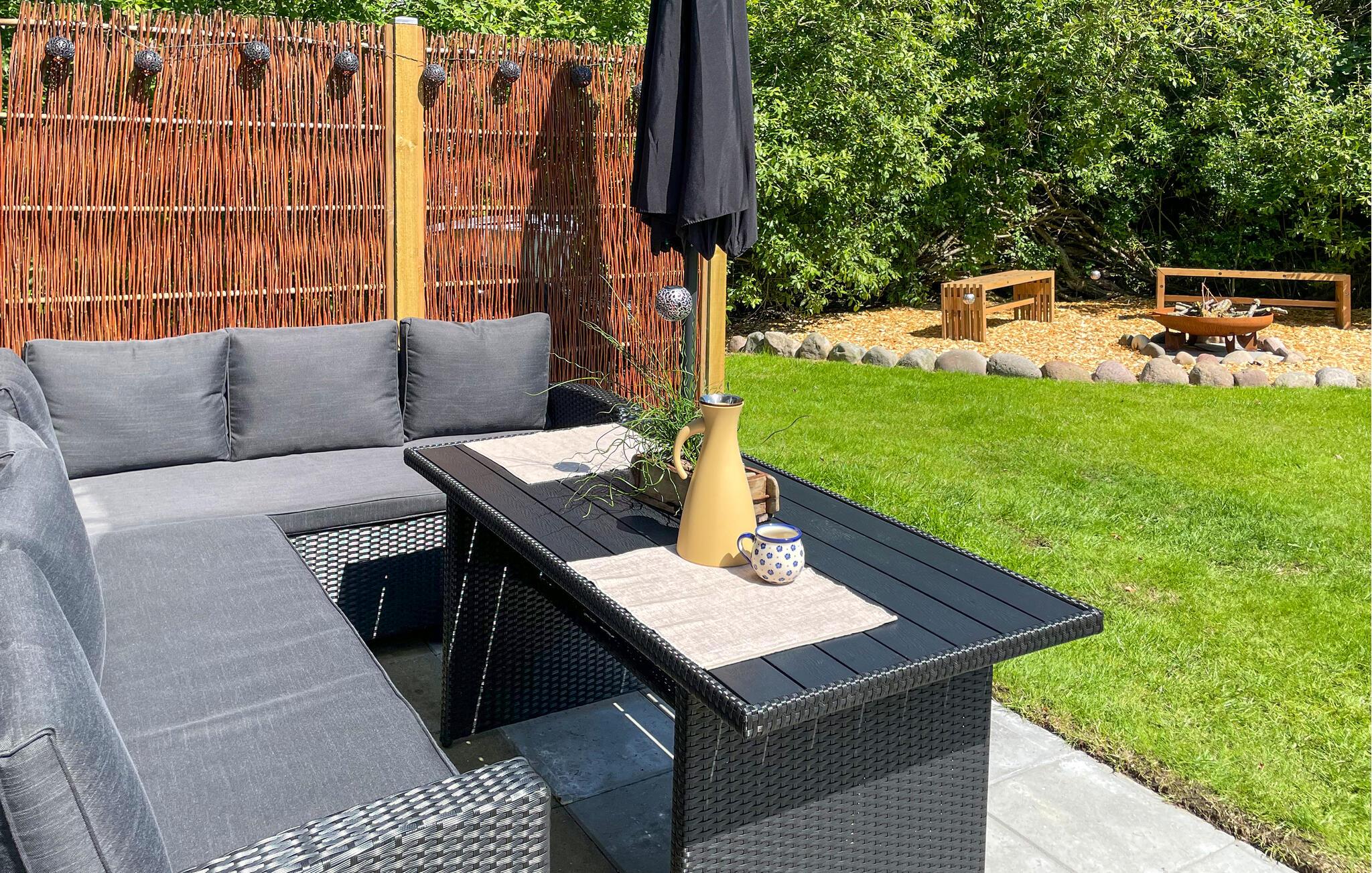 Das gepflegte Grundstück bietet viel Platz zum Spielen und Entspannen. Genießen Sie ausgiebig die Sonne und versammeln Sie die ganze Familie zu einem leckeren Essen vom Grill oder einem gemütlichen Abend am Lagerfeuer.