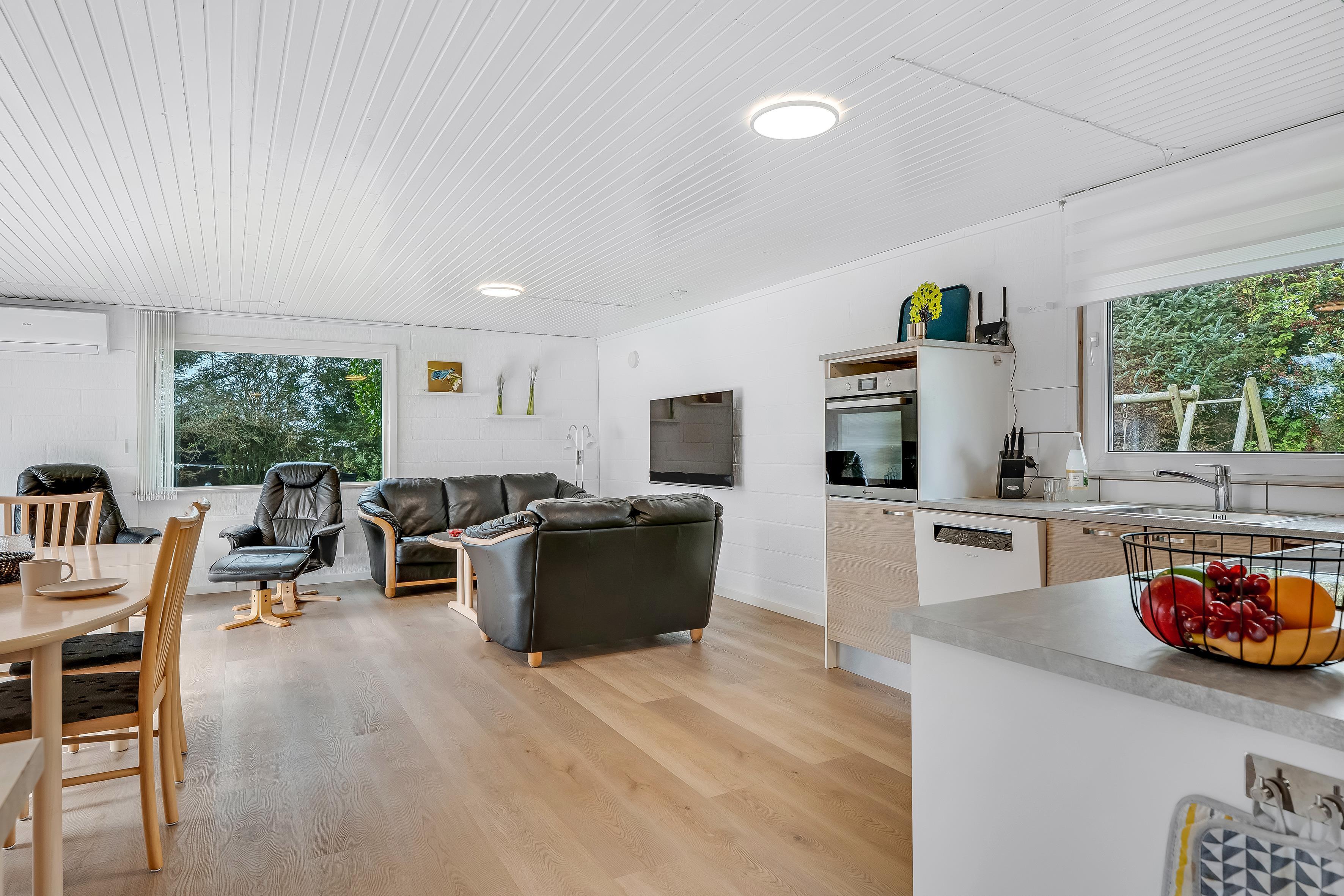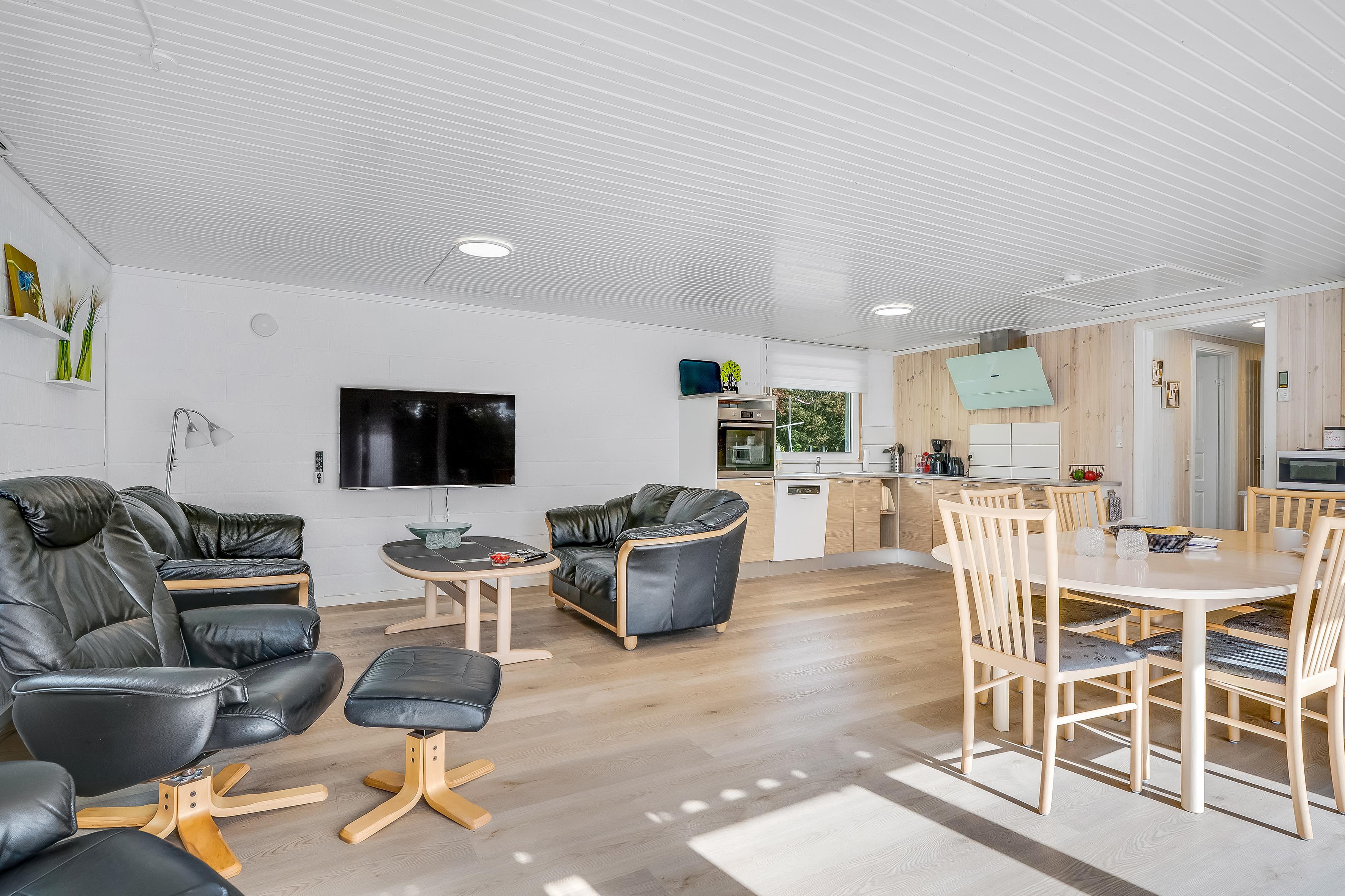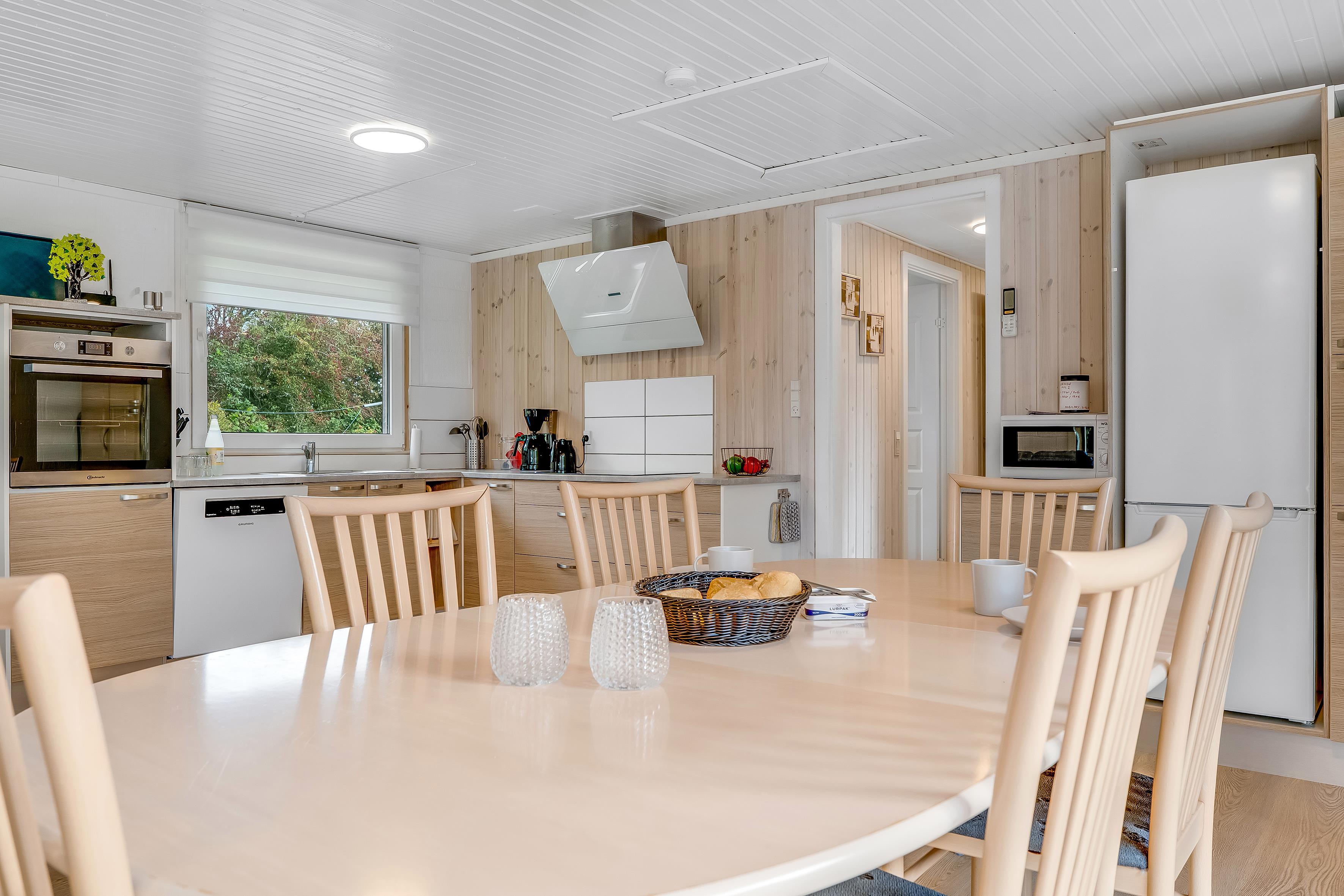 Die Küche ist mit allem ausgestattet, was Sie für die Zubereitung köstlicher Mahlzeiten benötigen, darunter ein Induktionskochfeld, ein Backofen, eine Mikrowelle, ein Geschirrspüler, ein Kühl- und ein Gefrierschrank mit einem Fassungsvermögen von 50 Litern. Es gibt außerdem WLAN und Chromecast, sodass Sie Ihre Lieblingssendungen auf dem vorhandenen Fernseher streamen können, der sowohl dänisches als auch deutsches Fernsehen bietet.