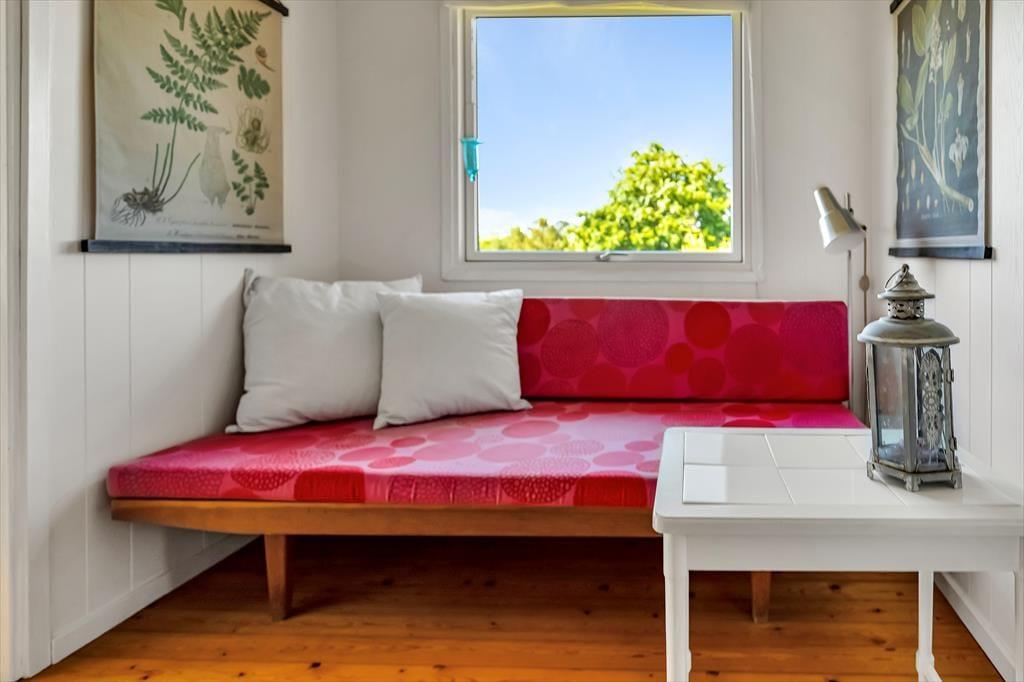 Dieses ältere Ferienhaus liegt hoch in der Landschaft. Von Teilen deines Grundstücks blickst du auf die Sejerøbucht. In der teilweise offenen Küche bereitest du die Mahlzeiten zu und kannst dich, während das Essen auf dem Herd gart, auf dem Diwan niederlassen. Die Mahlzeiten genießt du mit deinen Lieben am mitten im Wohnraum platzierten Esstisch, von dem du durch die großen Terrassenfenster hinaus in Freie blickst. Stimmungsvoll und gemütlich geht es auf dem Sofa und auf den älteren Sitzmöbeln im hellen Wohnraum zu. Hier genießt du angeregte Gespräche, einen frischen Becher Kaffee und lange Lesestunden mit Blick auf das flackernde Feuer im eingebauten Kaminofen.