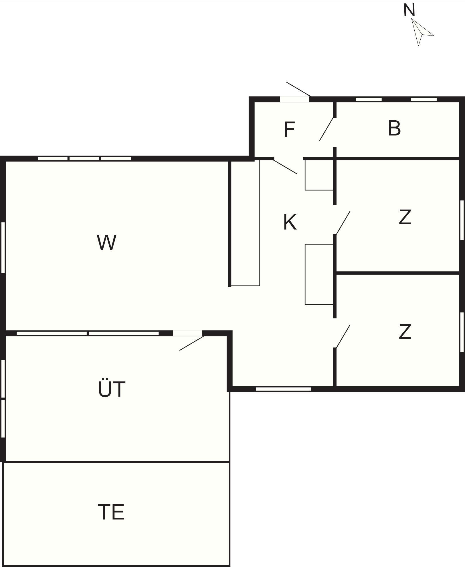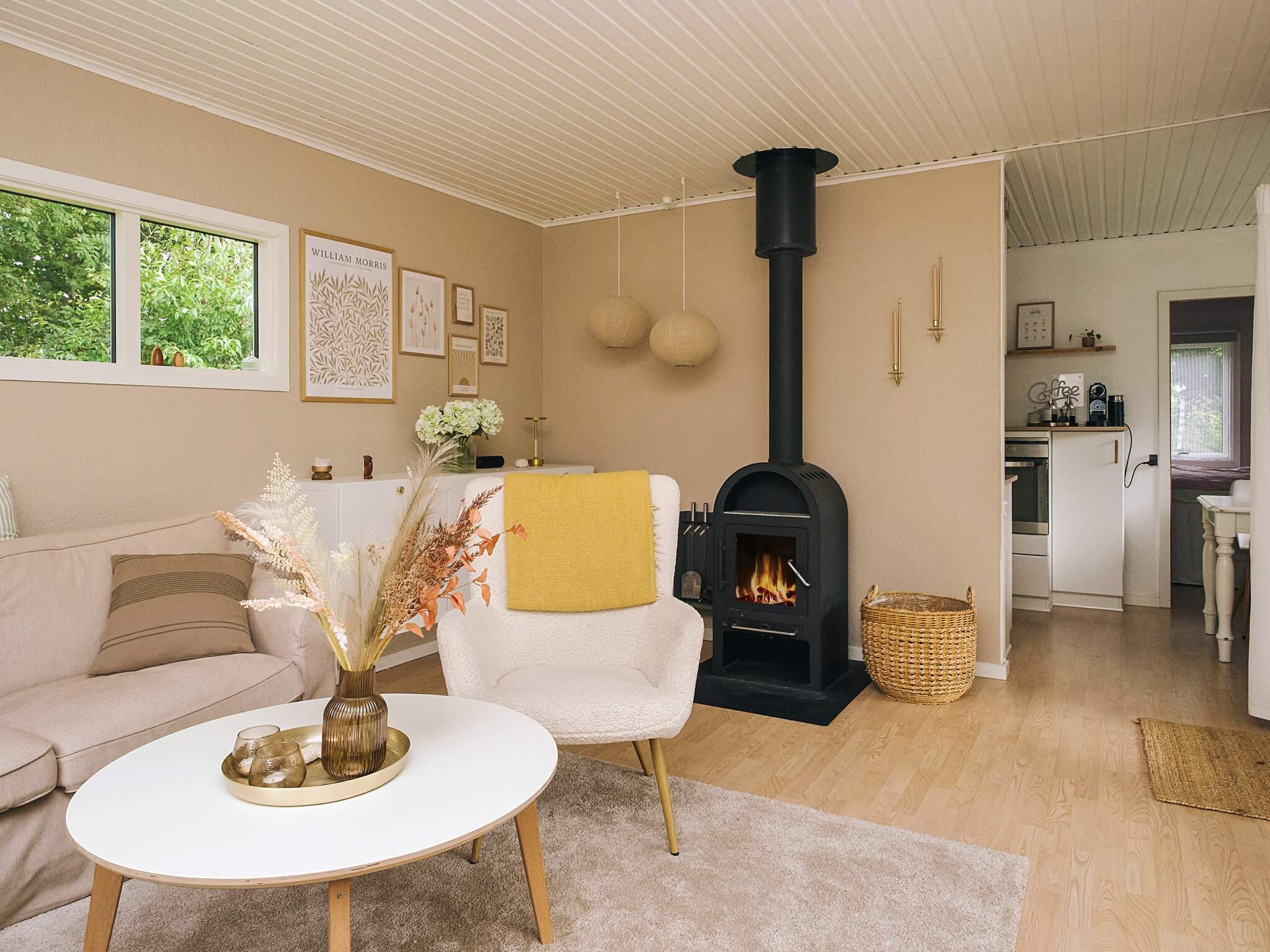 Dieses sehr gemütliche Ferienhaus liegt in einer ruhigen und friedlichen Umgebung – ideal für einen erholsamen Urlaub. Im Inneren erwartet Sie ein kleiner Eingangsbereich mit Zugang zum Badezimmer sowie eine ansprechende, offene Wohnküche mit teilweise neuen Elektrogeräten. Das helle, einladende Wohnzimmer verfügt über einen Kaminofen und bietet einen schönen Blick in den Garten, was für eine warme und heimelige Atmosphäre sorgt.