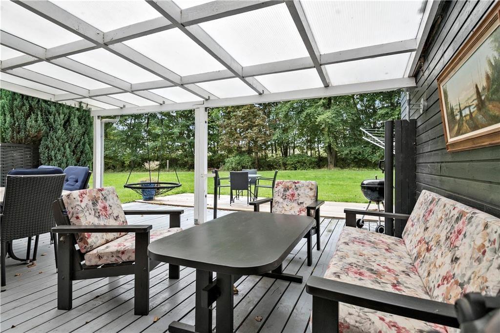 Das gepflegte und gediegen gebaute Ferienhaus liegt auf einem Naturgrundstück. Abgeschirmter Grund und schön angelegte Terrasse. Es stehen Ihnen gute Gartenmöbel zur Verfügung.