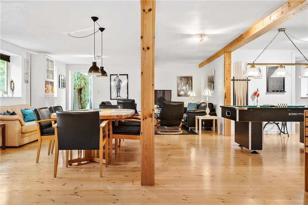 Im Wohnzimmer befinden sich Essbereich und Ausgang zur Terrasse.
