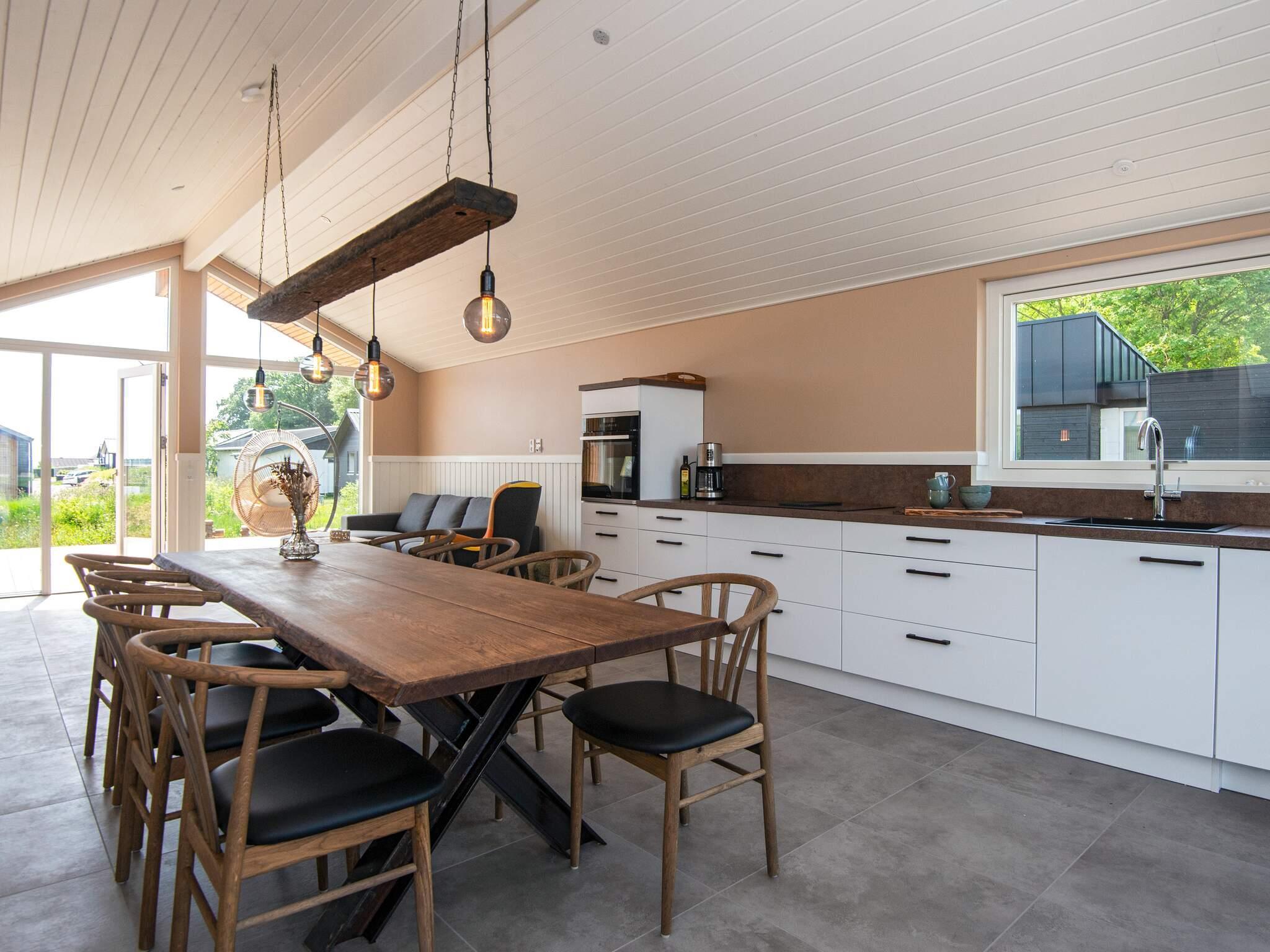 Herzstück des Ferienhauses ist der großzügige Wohn-/Essküchenbereich mit offener Decke bis zum First und bodentiefen Fenstern für Tageslicht und Ausblick. Von diesem Raum aus haben Sie auch Zugang zur großen Terrassenfläche mit Meerblick. Die großen, hellen Räume des Hauses tragen maßgeblich zum Wohlbefinden bei. Es gibt außerdem vier Schlafzimmer mit bequemen Betten.