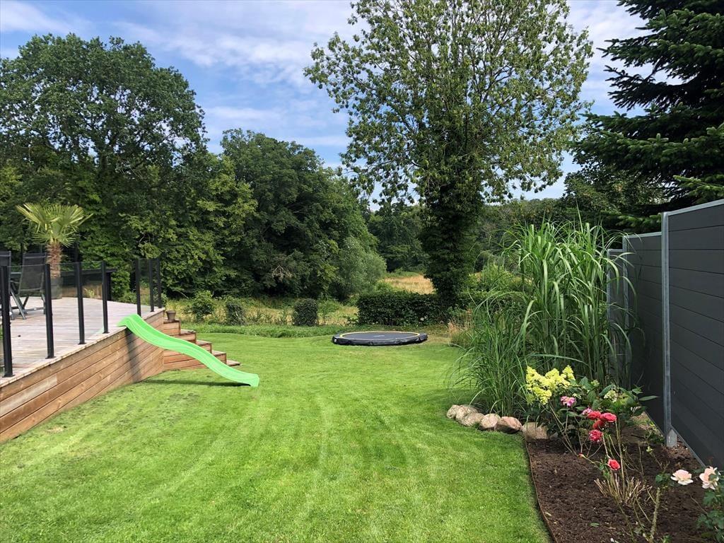 Der große Garten mit Schaukel, Trampolin, Gasgrill und Gartenmöbeln ist ideal für Familien mit Kindern. Der Strand ist nur 500 Meter entfernt, ideal für einen Tagesausflug ans Wasser. Einkaufsmöglichkeiten befinden sich in 9 km Entfernung.