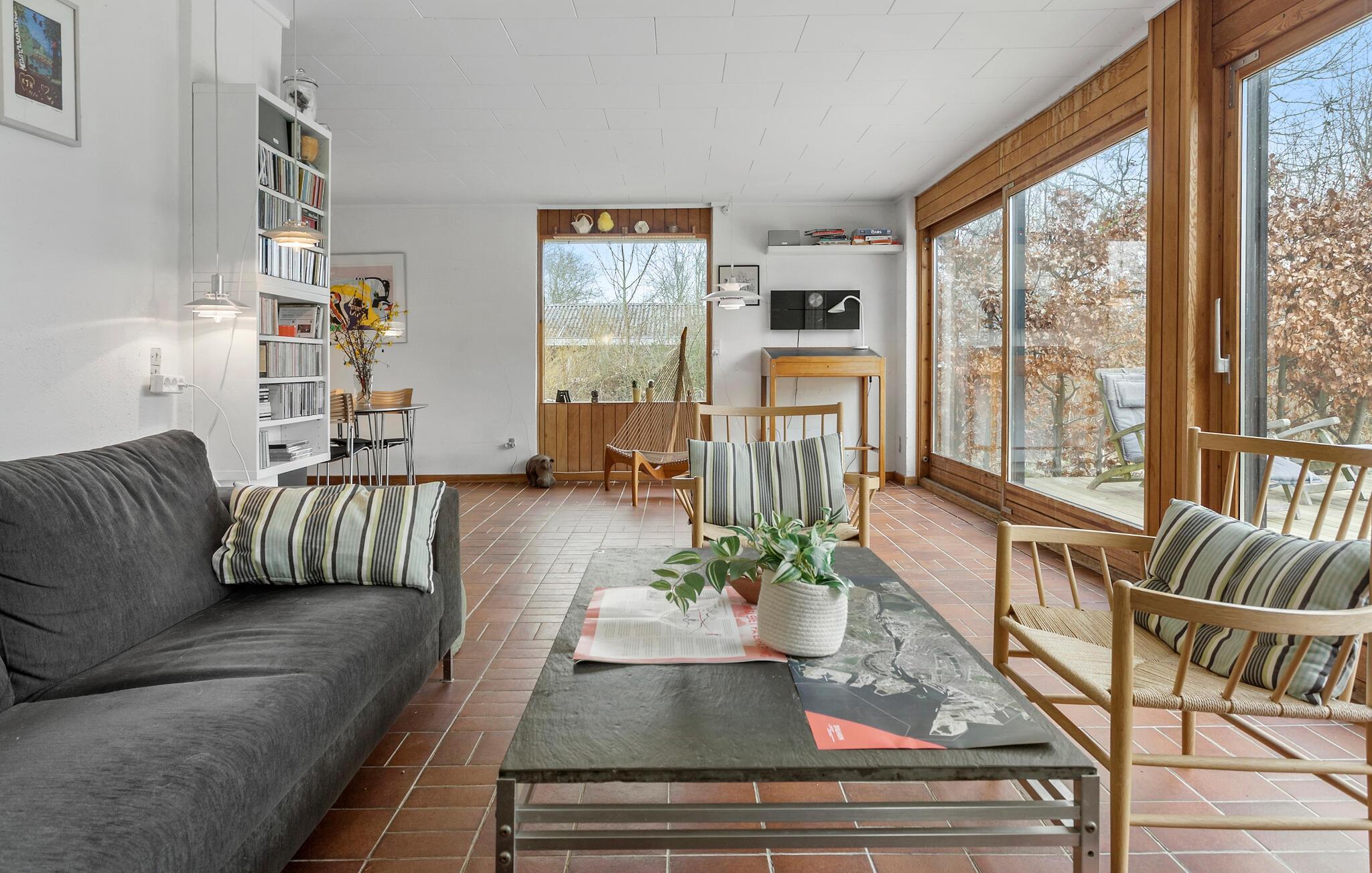 Entfliehen Sie dem Alltag in diesem charmanten Ferienhaus, das Entspannung und einen kurzweiligen Urlaub verspricht. Dank seiner großflächigen Fensterfronten sind die Innenräume hell und bieten schöne Aussichten auf den Garten und von oben auch einen weiten Blick auf die Umgebung. Nehmen Sie nach dem Frühstück und der ersten Tasse Kaffee des Tages, die Sie in der offenen Küche zubereiten können, Platz auf dem gemütlichen Sofa und planen Sie Ihren Urlaubstag. Für Leseratten lädt die Büchersammlung im ersten Stock, gepaart mit dem gemütlichen Sessel, zum Schmökern ein. Das Wohnzimmer mit einem einladenden Kaminofen verspricht wohlige Wärme an kühleren Tagen. Die behagliche Einrichtung schafft einen Raum, in dem Sie sich gleich zu Hause fühlen. Im Garten können Sie mit Ihren Kindern verschiedene Spiele spielen, zum Beispiel eine Partie Wikingerspiel.
