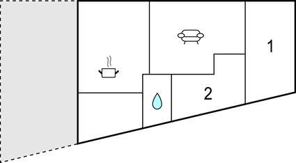 Badezimmer (nr. 1) - WC. Warmes und kaltes Wasser. Dusche
