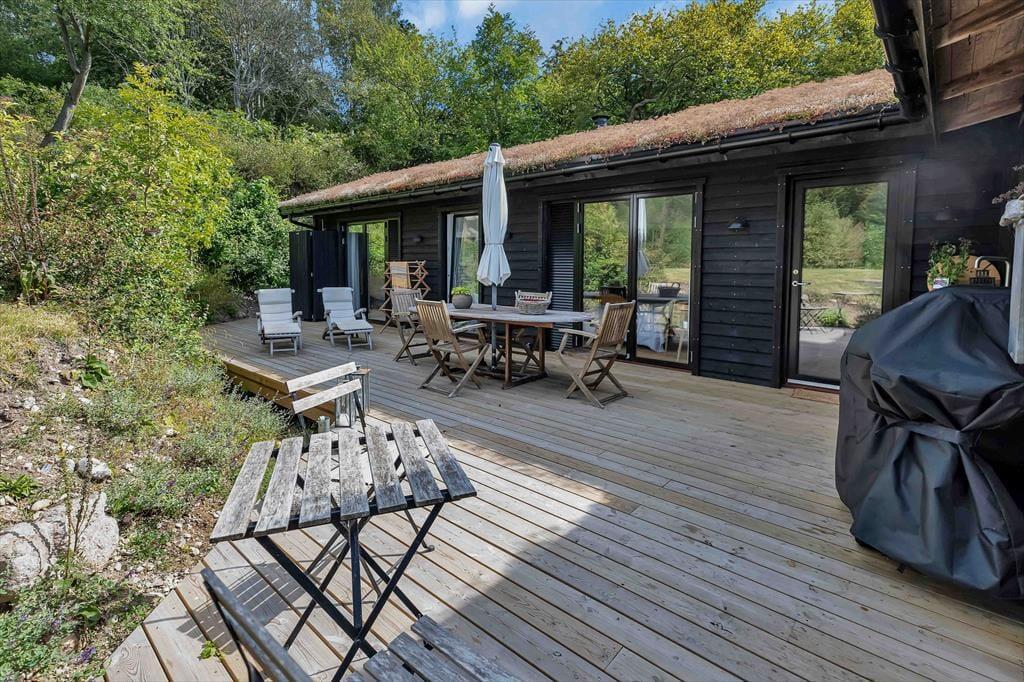 Auf der fantastischen Terrasse wirst du von morgens bis abends mit Sonne verwöhnt. Der überdachte Teil der Terrasse eignet sich hervorragend für gemütliche Stunden mit deinem Lieblingsgetränk - perfekt, um die Atmosphäre und die Stille der lauen Sommerabende zu genießen. Zu den attraktiven Annehmlichkeiten gehören eine schöne Außenküche und eine Außendusche, die dir nach einem Tag am Strand den Sand und das Salz des Meeres von der Haut spült. Oder wie wäre es mit einem morgendlichen Duschbad im Freien? Untermalt vom fröhlichen Gezwitscher der Vögel? Der schöne, ganz besondere Garten und das hügelige Grundstück, das von einer Randbepflanzung umgeben ist, runden dein Urlaubserlebnis unter offenem Himmel wunderbar ab.