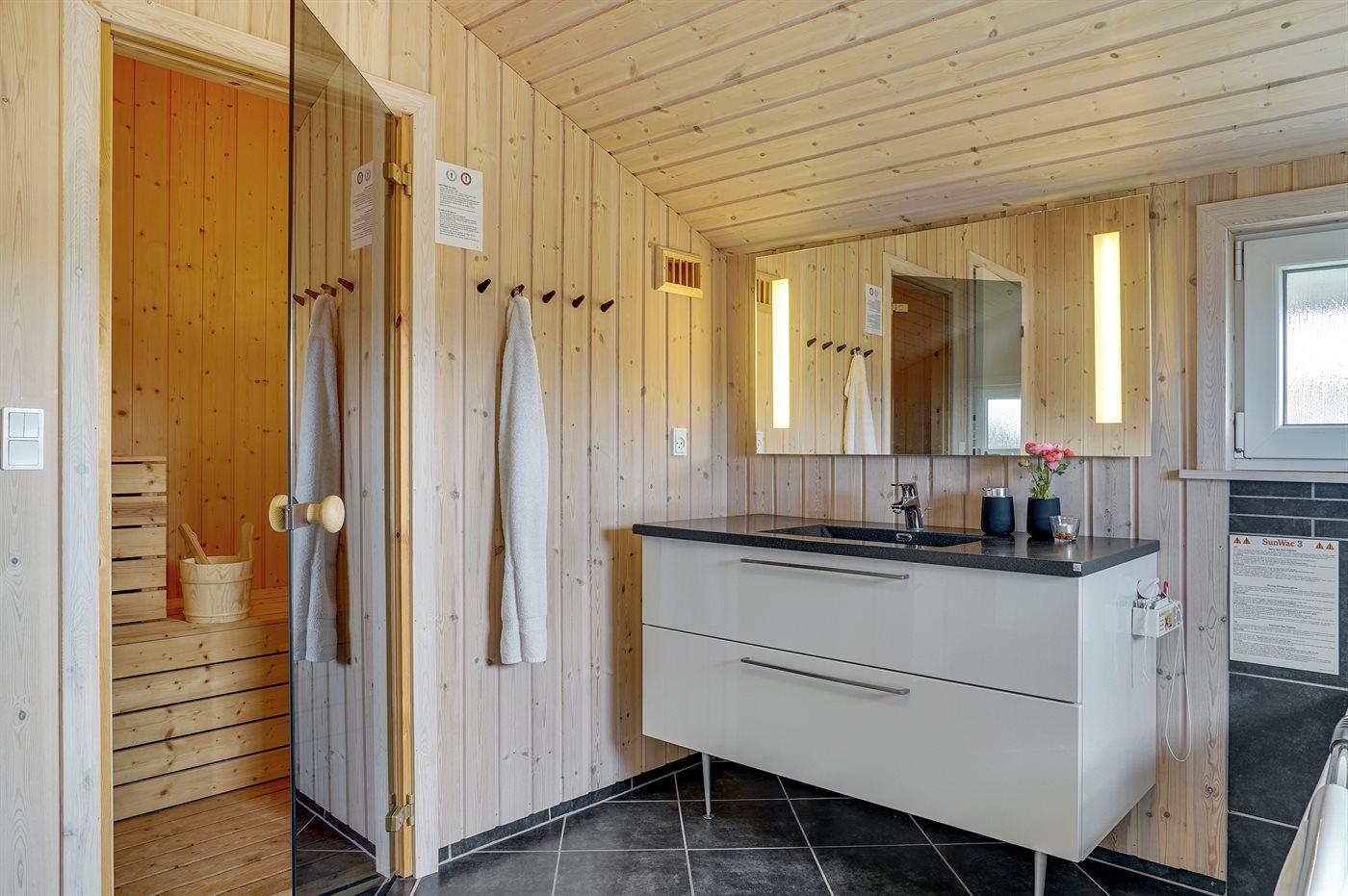 Es gibt 1 Badezimmer mit Duschnische und 2 Toiletten, davon 1 Gästetoilette. Fußbodenheizung in 1 Badezimmer. Es steht eine Sauna zur Verfügung in der Sie sich so richtig entspannen können.
