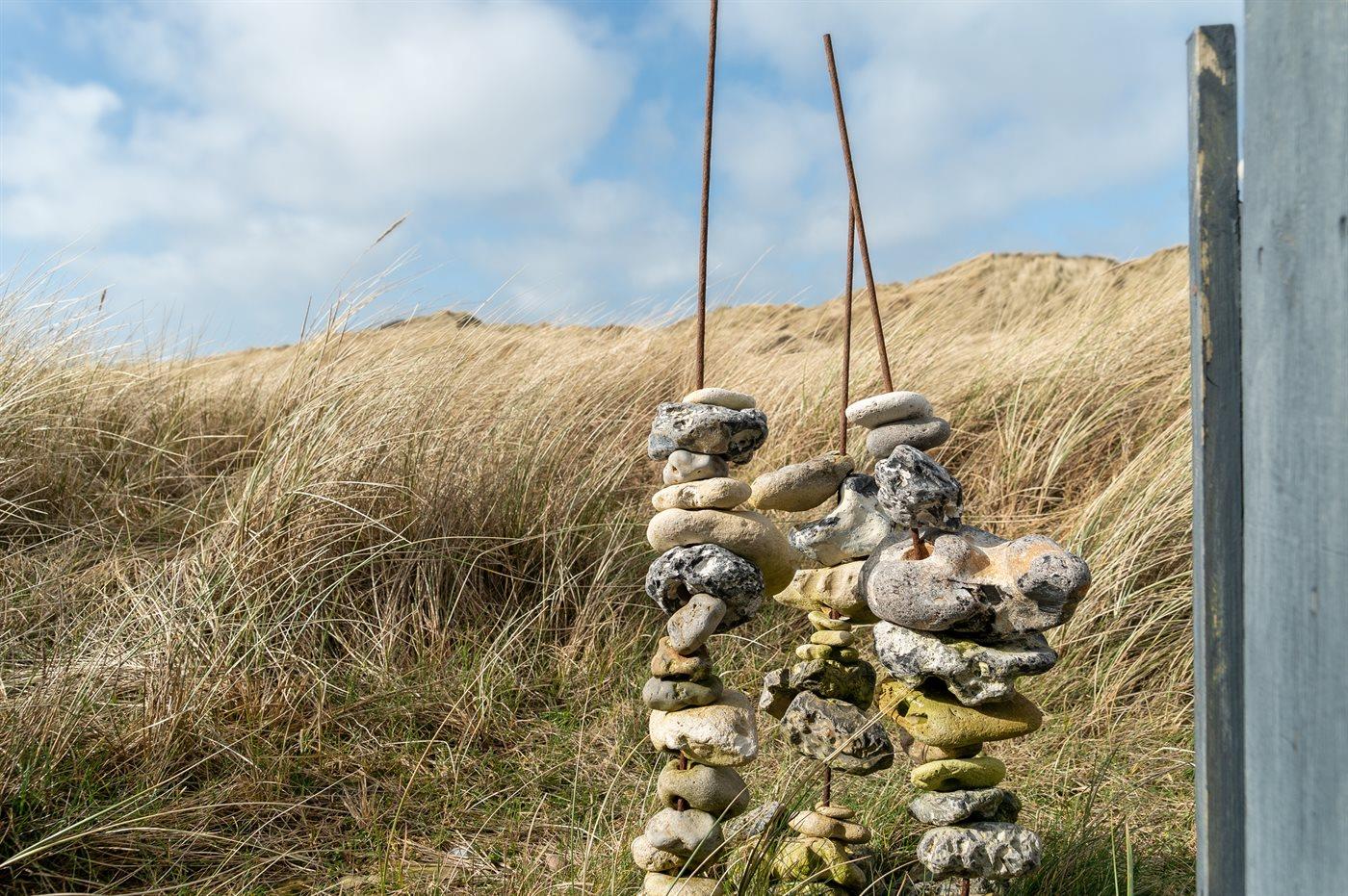 Die Ferienunterkunft liegt auf einem 1400 m² großen Dünengrundstück. Die Entfernung zum Meer beträgt 50 m. Die nächste Einkaufsmöglichkeit liegt 500 m entfernt. Es steht ein 25 m² Terrassenareal zur Verfügung. Außerdem gibt es 7 m² überdachte Terrasse. Sandkasten. Außendusche. Parkplatz auf dem Grundstück.