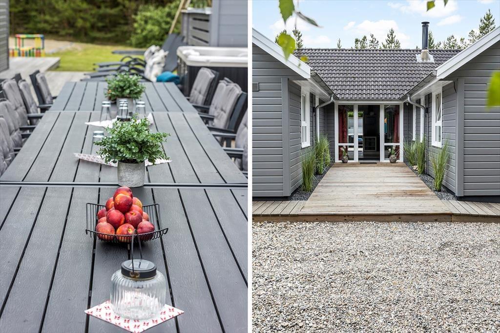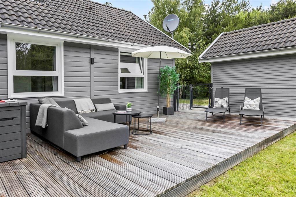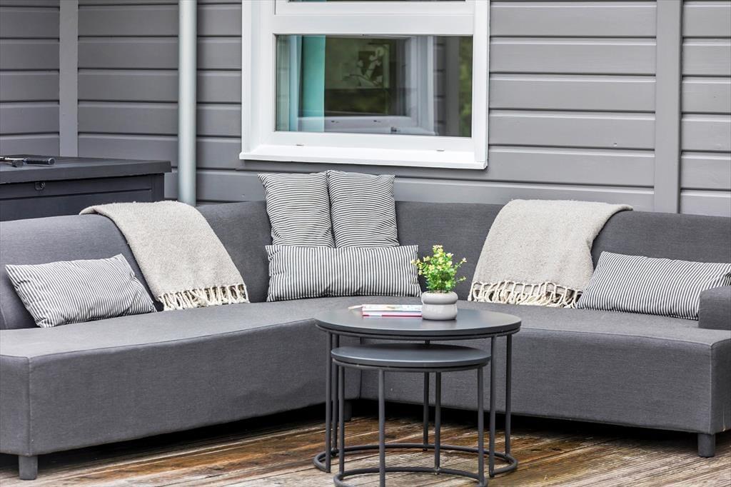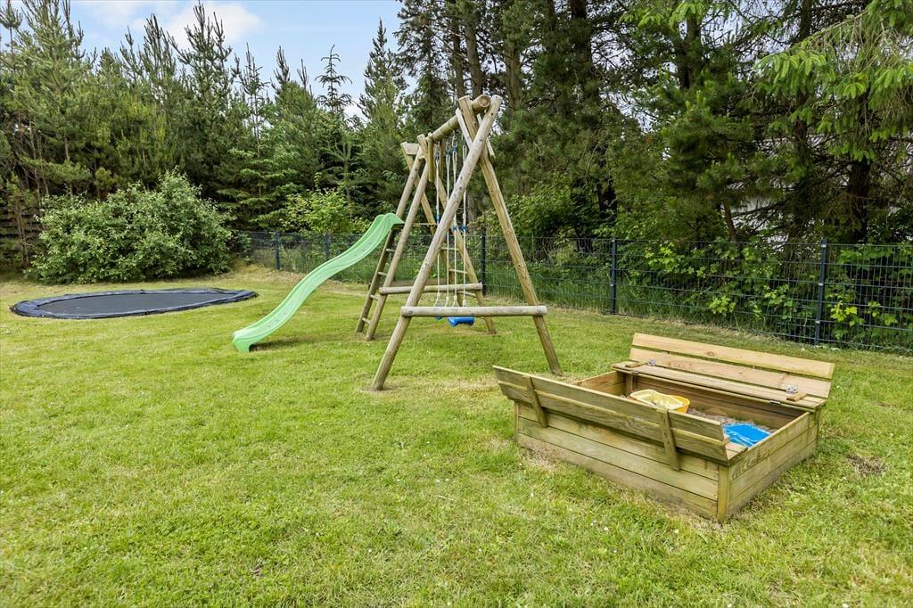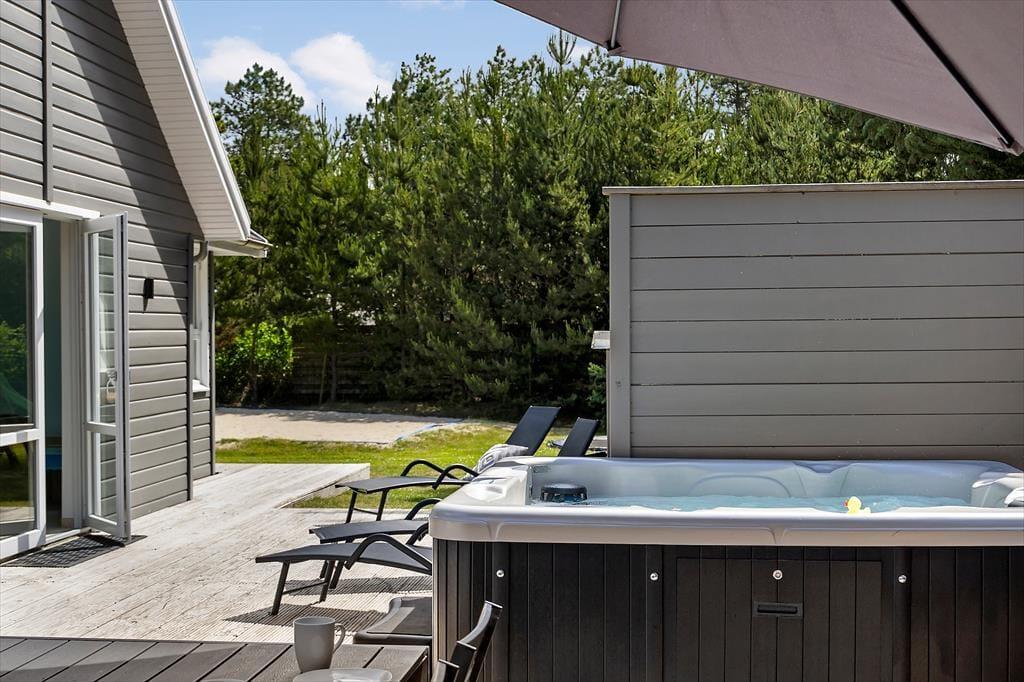 Auch im Freien gab es kürzlich Verbesserungen in Form einer großen, sonnigen Holzterrasse, die sich südlich des Ferienhauses befindet. Sie haben Zugang von sowohl dem Wohnbereich als auch dem Poolbereich, und es ist eine schöne, teilweise geschützte Oase, die mit Grill, Liegestühlen und hochwertigen Gartenmöbeln sowie einer Außendusche, einer Fasssauna und einem wunderbaren Outdoor-Whirlpool ausgestattet ist. Das Grundstück ist 2.350 m² groß, sodass Sie auch viel Platz zum Parken und für Aktivitäten auf dem Rasen haben, der mit Spielgeräten für Kinder ausgestattet ist. Der Garten ist außerdem eingezäunt, welches sicherstellt, dass niemand verloren geht, während sie herumtollen und viel Energie verbrennen.