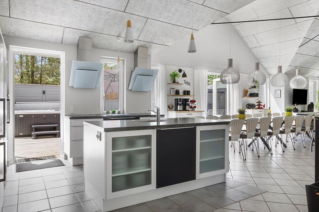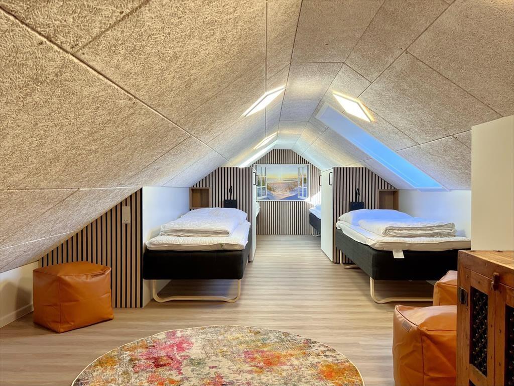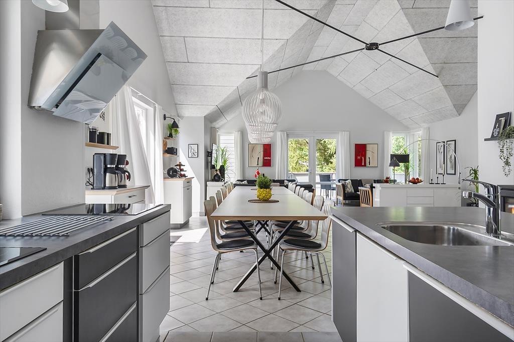 Das Ferienhaus befindet sich in Kongsmark, inmitten von Rømø, und wurde laufend renoviert, um mit der Zeit Schritt zu halten. Im Jahr 2022 wurden umfangreiche Verbesserungen vorgenommen, bei denen die sieben Schlafzimmer des Hauses eine gründliche Renovierung bekommen haben – es fühlt sich fast wie der Check-in in ein Boutique-Hotel an, in dem jedes Zimmer seinen eigenen einzigartigen Stil hat. Ein gemeinsames Merkmal der Schlafzimmer sind die komfortablen Doppelbetten, die auch in Einzelbetten umgewandelt werden können, und es ist außerdem praktisch, dass sie in zwei separaten Bereichen mit jeweils eigenem Badezimmer angeordnet sind. Wenn viele von Ihnen zusammenkommen, können Sie das Loft nutzen, denn hier ist Platz für weitere vier Personen. Das dritte Badezimmer des Hauses befindet sich im schönen Poolbereich, wo Sie das Leben im Swimmingpool, im Whirlpool und in der Sauna genießen können. Der Poolbereich wurde im März 2025 renoviert, damit er hell und modern erscheint. Ein weiterer gemütlicher Sammelpunkt ist der Aktivitätsraum, wenn du beim Billard, Tischfußball, Tischtennis oder Dart Kräfte messen möchtest. Ansonsten kannst du dich in dem großen, hohen Wohnraum versammeln, der mit einer modernen Küche, einem Brennofen, einem langen Esstisch und einer geräumigen Sofaecke eingerichtet ist. Nach einem aktiven Tag in den inspirierenden Räumen des Hauses können Sie sich darauf freuen, Zeit in der geräumigen Küche zu verbringen. Die zuletzt in 2024 renovierte Küche bietet viel Platz für gemütliche Kochmomente und gemeinsame Mahlzeiten, wo alle hungrigen Münder satt werden können.