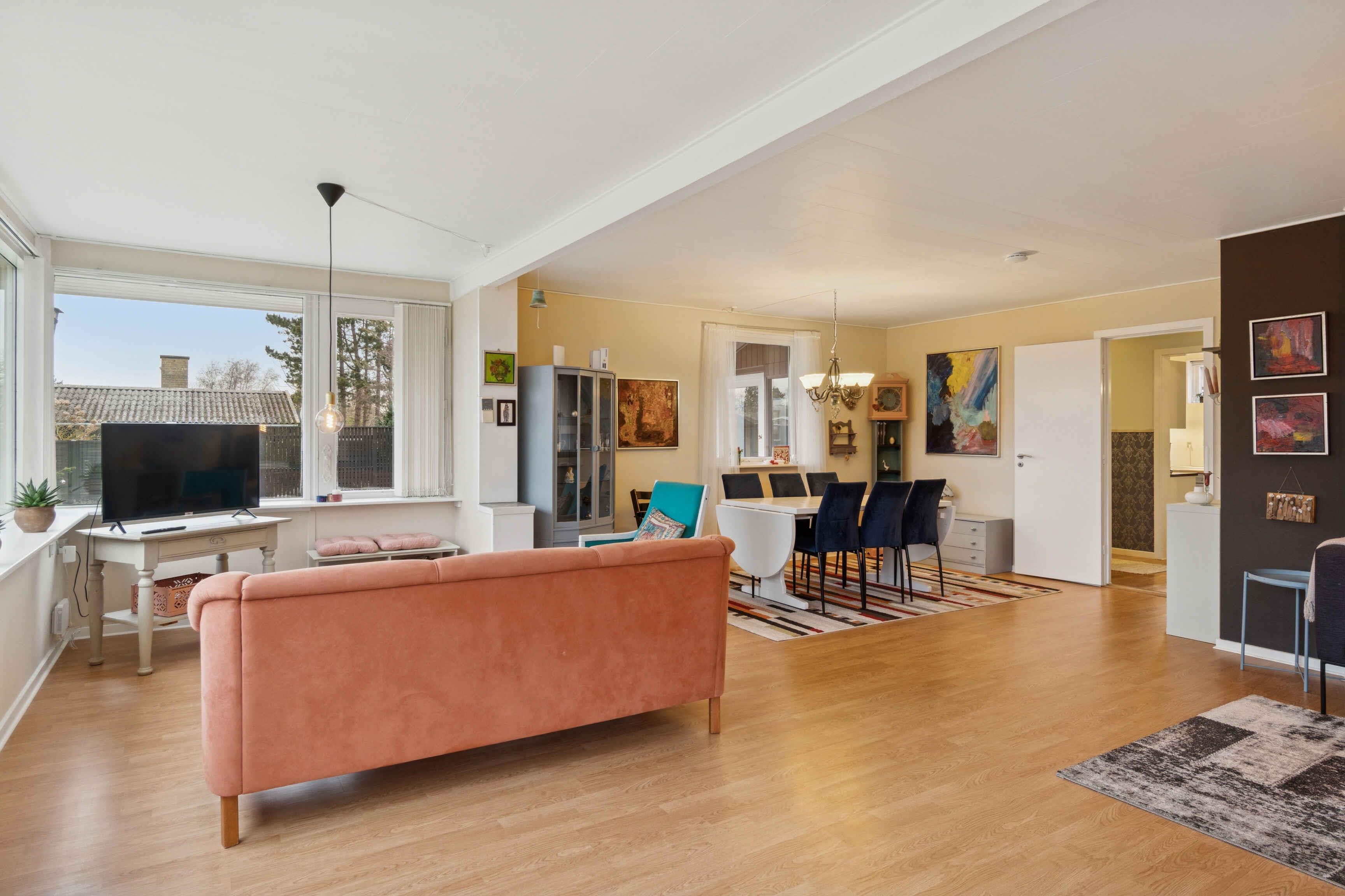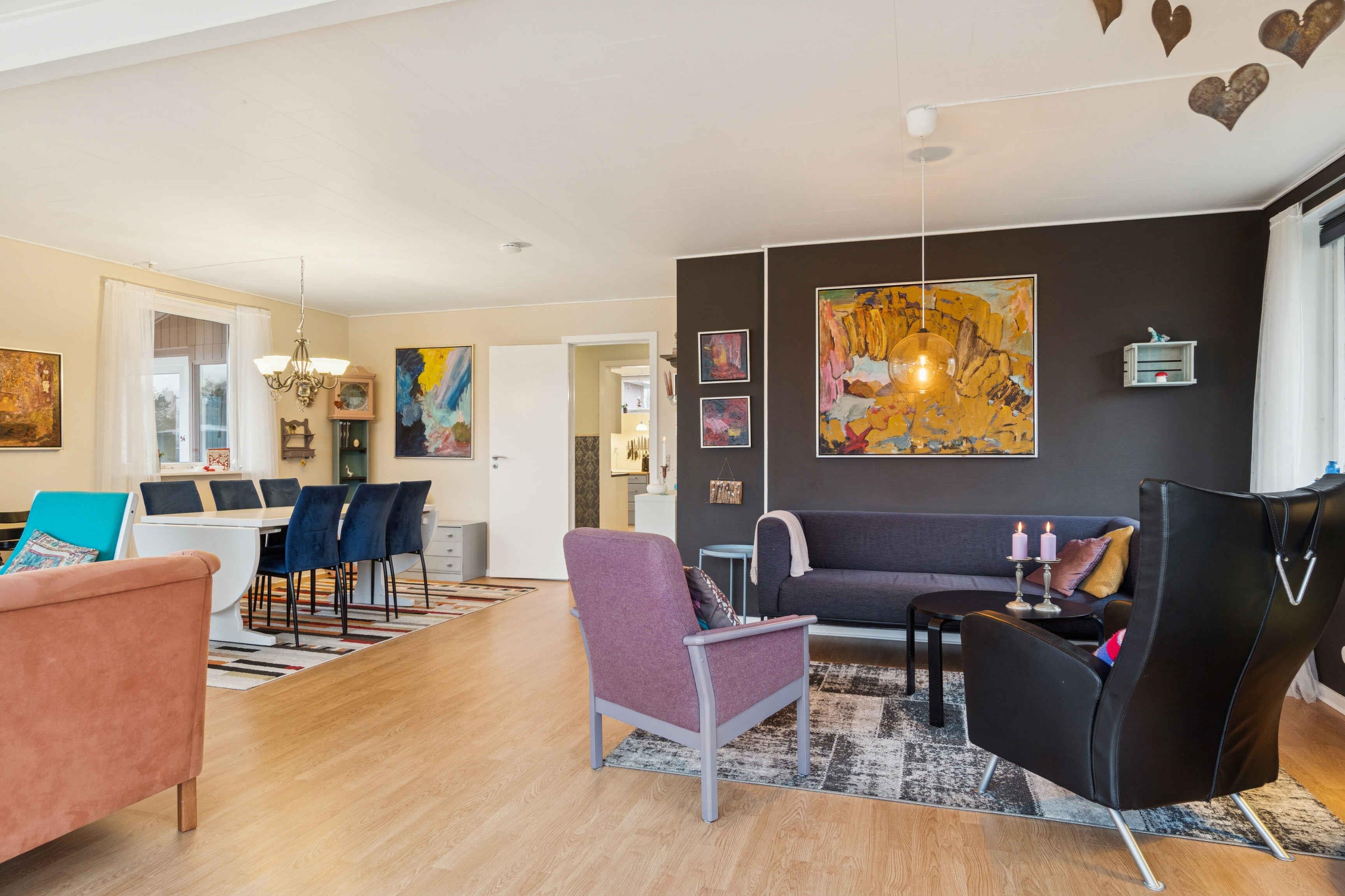 Geräumiges Ferienhaus mit 132 m², 3 Zimmern und großem Wohnbereich. Großer Garten und nur 150 m zum Strand. Naturnahe Umgebung mit guten Spaziermöglichkeiten. Einkaufsmöglichkeiten innerhalb von 2 km.