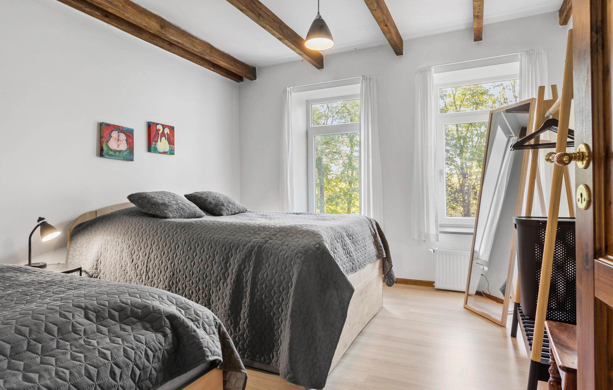 Für Naturfreunde gibt es zahlreiche Wander- und Radwege entlang der Grenze, die Sie durch idyllische Landschaften führen. Am Abend bietet die Feuerstelle im Garten einen idealen Platz, um den Tag bei einem Lagerfeuer ausklingen zu lassen.