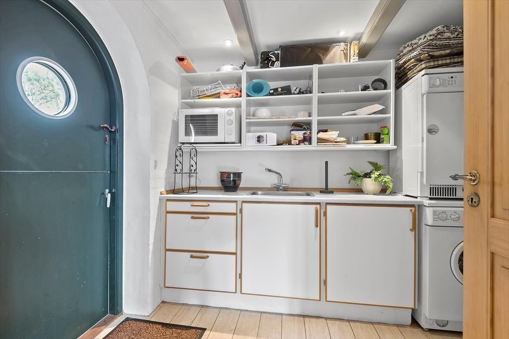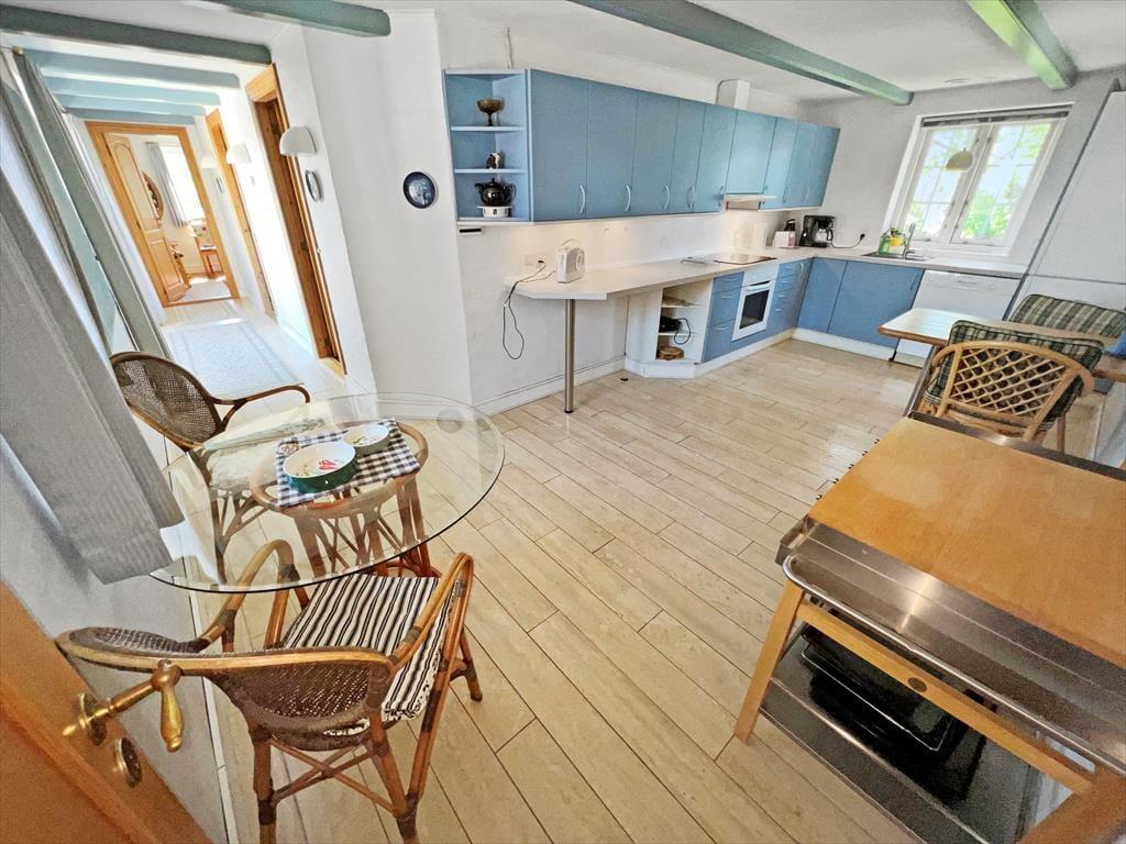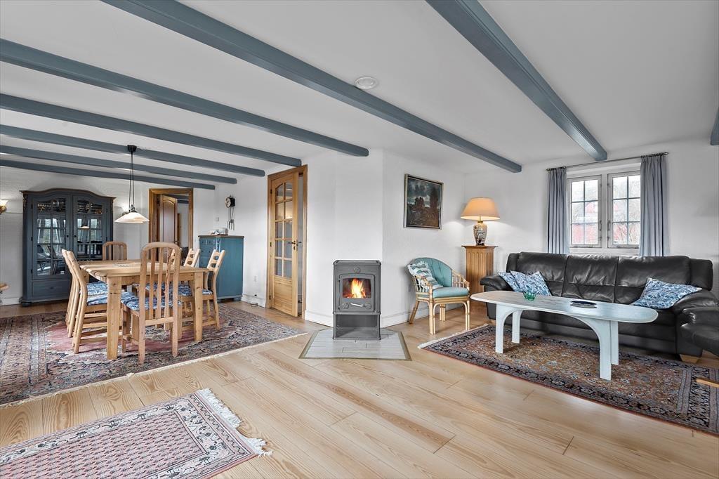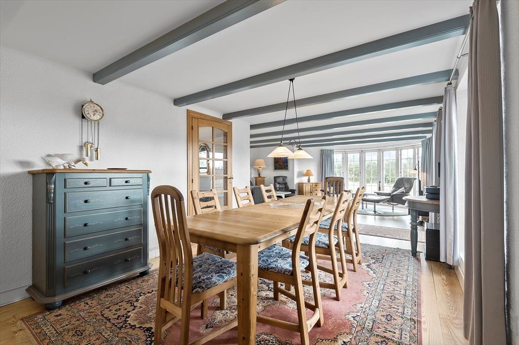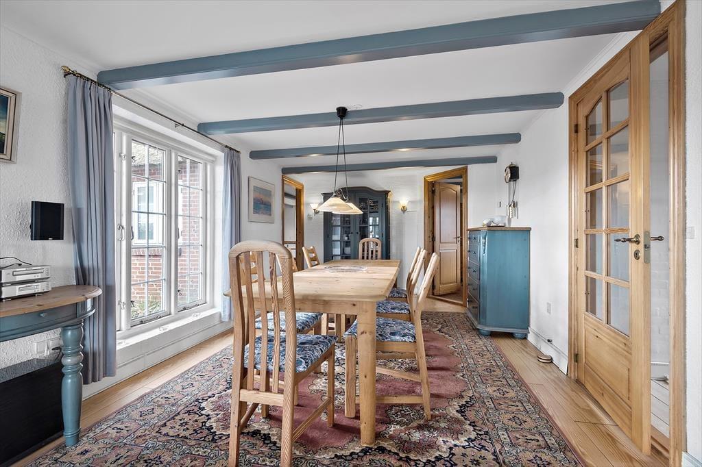 Das Ferienhaus schmückt die natürliche Wattenmeerumgebung mit seiner rotbraunen Backsteinfassade, seinen weißen Sprossenfenstern und seinem schönen Reetdach. Im Innenbereich ist die Atmosphäre mindestens genauso charmant, denn hier gibt es bemalte Holzbalken an der Decke, und die Möbel wurden sorgfältig ausgewählt, um die gemütliche Stimmung in den Räumen zu unterstreichen. Insgesamt kannst du dich auf 156 m² ausbreiten, die sich unter anderem in drei gute Schlafzimmer mit i alt seks sovepladser. Es gibt zwei Badezimmer, von denen das größte geschmackvoll mit Whirlpool und Sauna ausgestattet ist – so kannst du dich auch im Urlaub problemlos auf den ein oder anderen Wellness-Abend freuen. Die Küche des Ferienhauses ist hell, einladend und gut ausgestattet, inklusive Geschirrspüler und Mikrowelle. Darüber hinaus gibt es eine kleine Essecke, falls du deinen Frühstückskaffee lieber dort zu dir nehmen möchtest. Die restlichen Mahlzeiten des Tages können im Wohnzimmer serviert werden, das komfortabel mit einem Esstisch, weichen Sitzmöbeln, einem Brennofen und großen Fenstern ausgestattet ist, die Tageslicht und eine schöne Aussicht ins Innere des Hauses einladen.