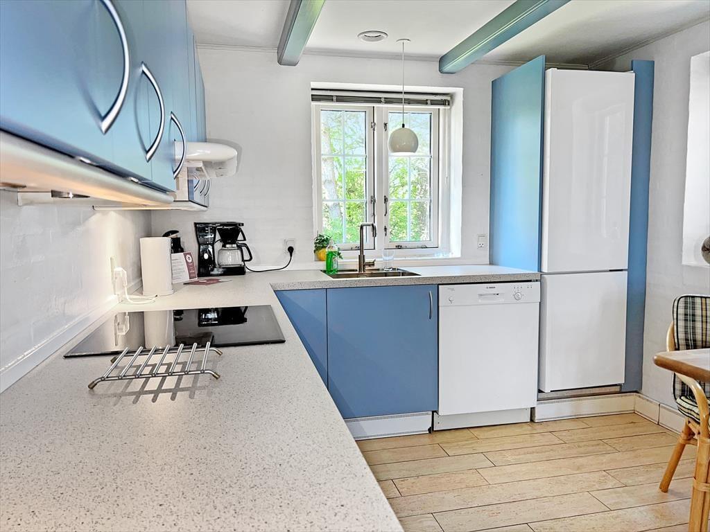 Das naturschöne Gebiet Kromose ist ein wunderbarer Ort, um deinen Urlaub zu verbringen. Es liegt zentral auf der Insel mit Aussicht über die Ostküste, und die Entfernung zu Einkaufsmöglichkeiten, zum Rømø-Damm und zum Ort Havneby ist nicht weit. Vom Hafen in Havneby aus setzt eine Fähre regelmäßig zur berühmten Nachbarinsel Sylt über. Wenn du das Wattenmeer, welches zum UNESCO-Weltnaturerbe gehört, näher kennenlernen möchtest, sind es nur wenige Minuten Fußweg vom Ferienhaus aus zur Küste. Auch zur schönen Kirkeby Plantage ist es nicht sehr weit, und neben Wanderwegen findest du dort auch einen eingezäunten Hundewald und einen Waldspielplatz. Wenn du schwimmen möchtest, kannst du mit dem Auto oder Fahrrad an die Westküste der Insel fahren, wo du am Strand von Lakolk oder am Sønderstrand in der Nordsee baden kannst.