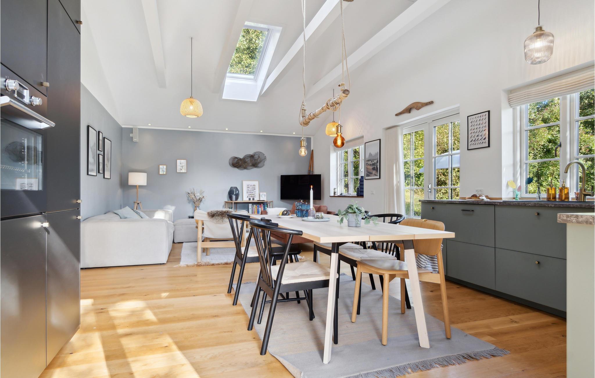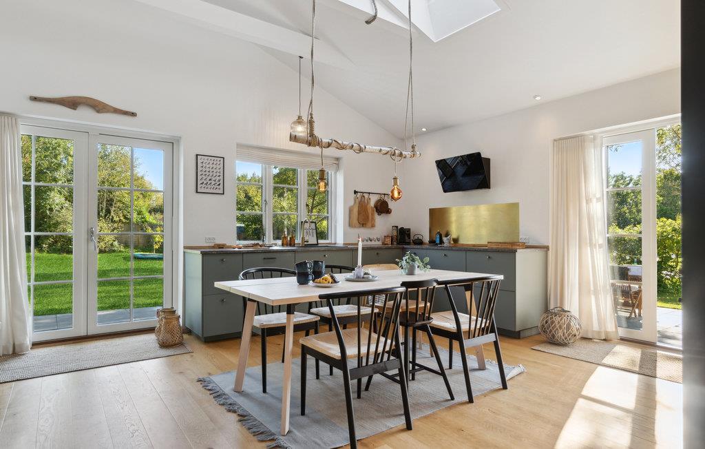 Willkommen in diesem einladenden Ferienhaus, das Sie nur wenige Schritte vom Strand empfängt. Entspannen Sie hier in komfortablem und stilvollem Ambiente. Genießen Sie die gemeinsamen Mahlzeiten am langen Esstisch und gemütliche Abende auf einladenden Sofas, spielen Sie Karten oder lassen Sie die Erlebnisse des Tages noch einmal Revue passieren.