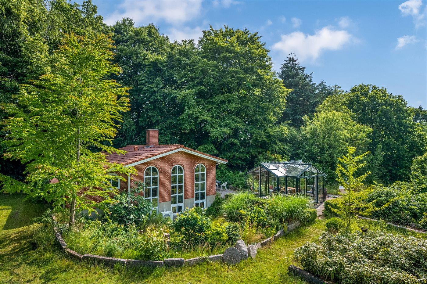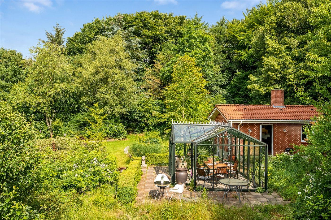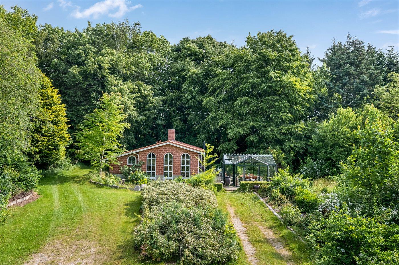Das Haus liegt auf einem 19.000 m2 großen Naturgrundstück, jedoch in unmittelbarer Nähe der kleinen Stadt Næsbjerg. Hier gibt es Ruhe und Natur pur. Man kann die Natur auf der Terrasse und in der Umgebung um das Haus herum genießen, und wenn das Wetter nicht so gut ist, kann man die Ruhe und den Urlaub im Gewächshaus genießen.