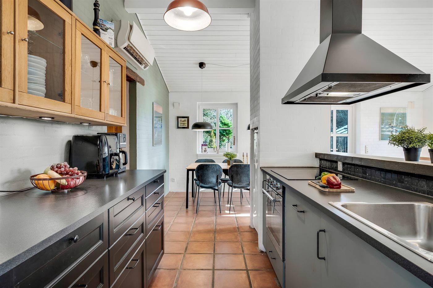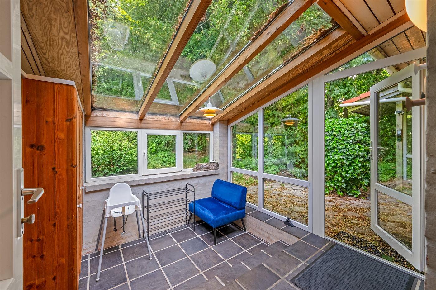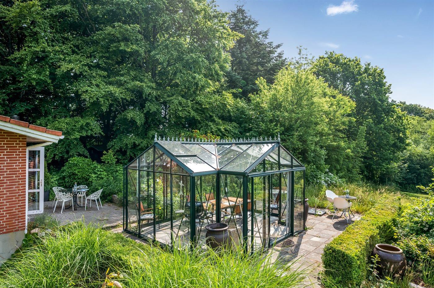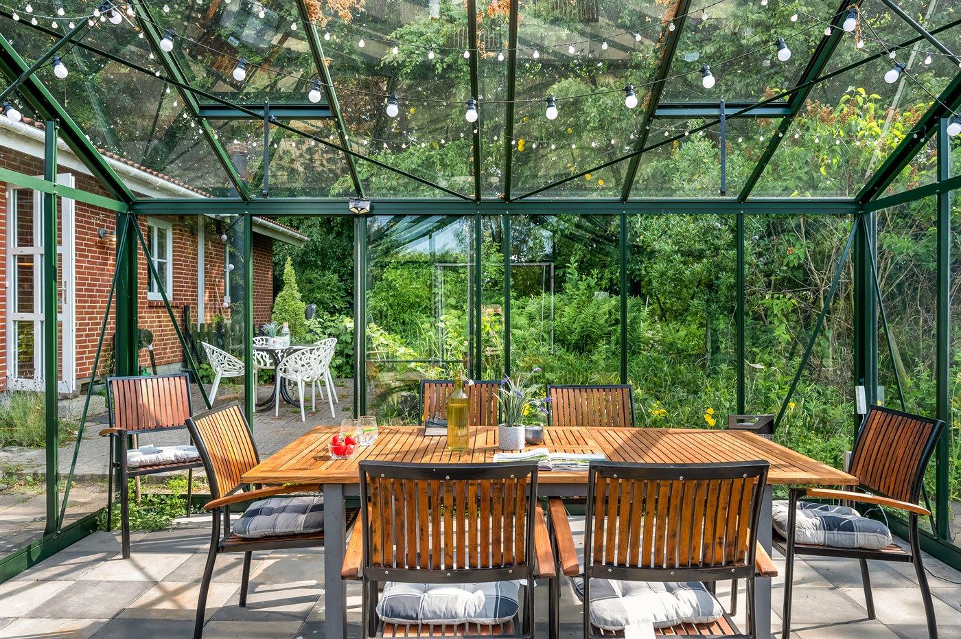 Das Haus liegt auf einem 19.000 m2 großen Naturgrundstück, jedoch in unmittelbarer Nähe der kleinen Stadt Næsbjerg. Hier gibt es Ruhe und Natur pur. Man kann die Natur auf der Terrasse und in der Umgebung um das Haus herum genießen, und wenn das Wetter nicht so gut ist, kann man die Ruhe und den Urlaub im Gewächshaus genießen.
