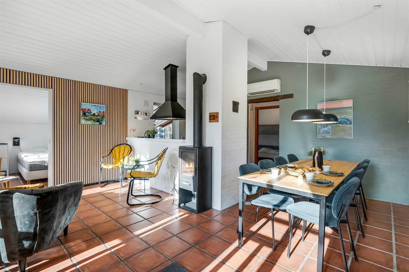 Das Ferienhaus eignet sich für 8 Personen. 2 der Schlafplätze eignen sich jedoch nur für größere Kinder (4-11 Jahre). Die Ferienunterkunft hat eine Wohnfläche von 134 m², ist 2-stöckig, und wurde 2000 gebaut. 2023 wurde die Ferienunterkunft teilweise renoviert. Es ist erlaubt 1 Haustier mitzubringen. Die Ferienunterkunft ist mit energiefreundlicher Luft-Luft- Wärmepumpe ausgestattet. Fußbodenheizung in allen Räumen. Die Ferienunterkunft ist mit Waschmaschine ausgestattet. Tiefkühlmöglichkeit mit 100 Liter Nutzinhalt. Es gibt außerdem einen Kaminofen.