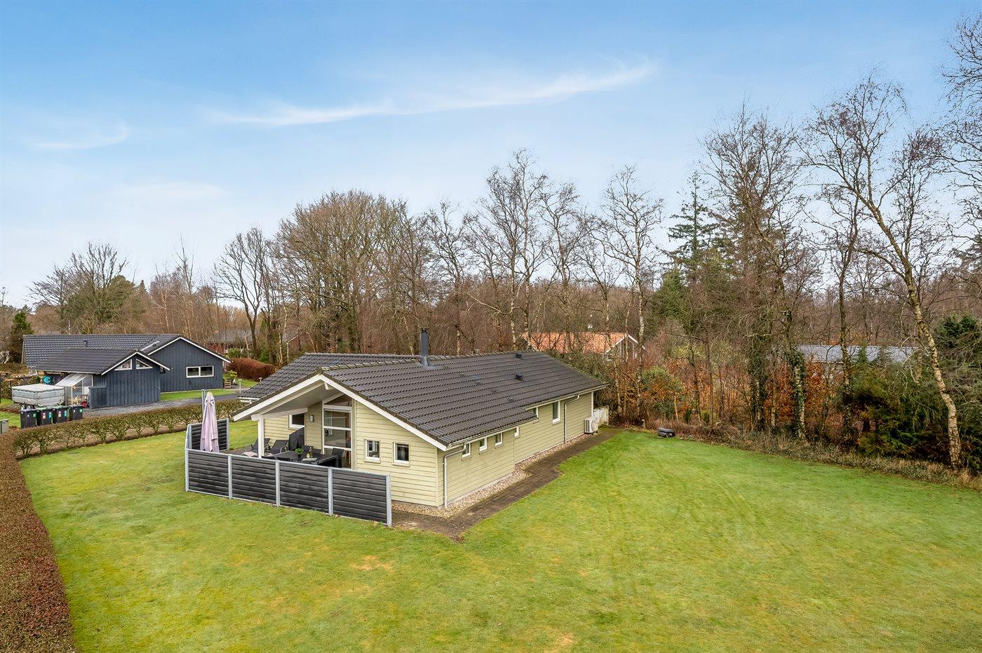 Ruhiges Ferienhaus am Kvie Sø in Dänemark mit Whirlpool, Sauna und moderner Ausstattung für erholsame Tage in der Natur.