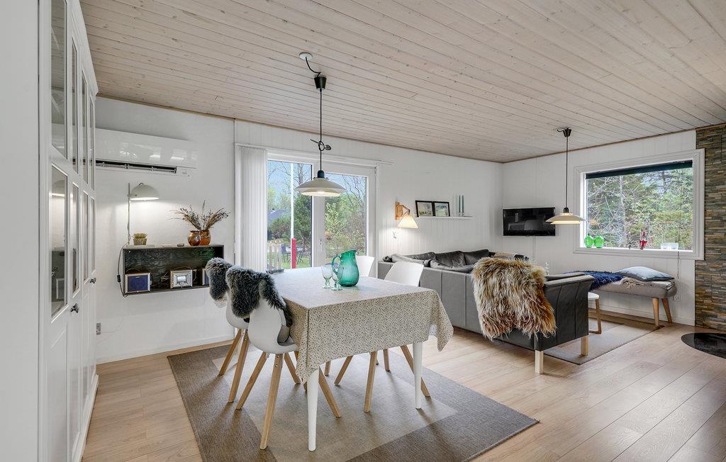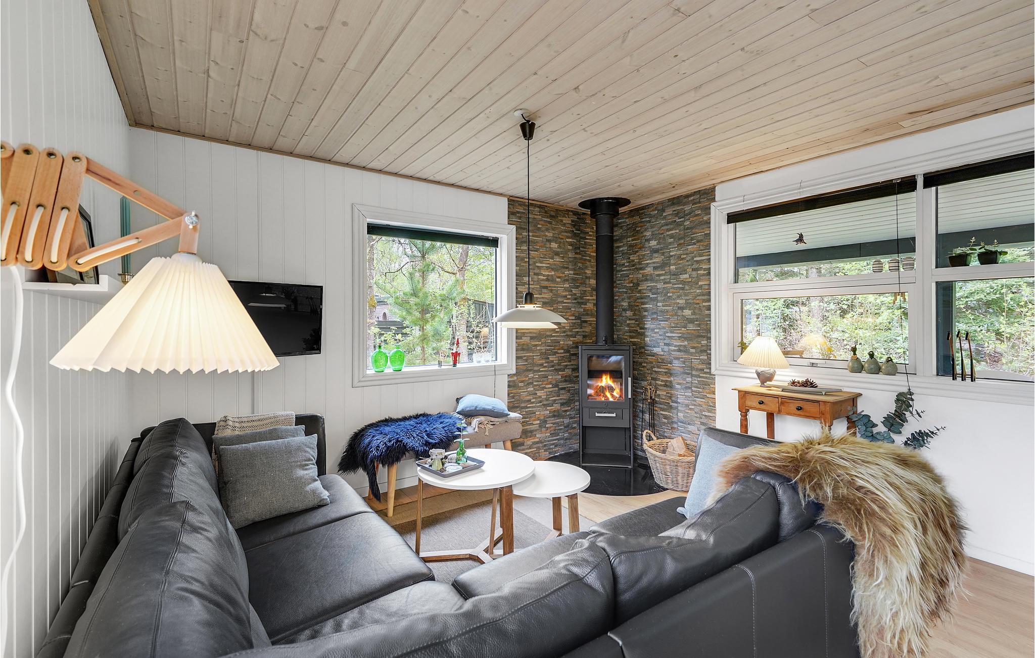 Dieses helle und warme Ferienhaus bietet Ihnen eine gemütliche Atmosphäre, in der Sie sich besonders wohlfühlen werden. Dieses Domizil bietet Ihnen einen geräumigen Wohnraum und ein recht offengelegtes Wohnkonzept, mit Kamin und moderner Küche, die bestens für Ihren Urlaub ausgestattet ist. Zudem haben Sie Zugang zu einer überdachten Terrasse mit Grill, wo Sie Ihre Lieblingsgerichte zubereiten, und die Abende mit einem Gläschen Wein ausklingen lassen können.