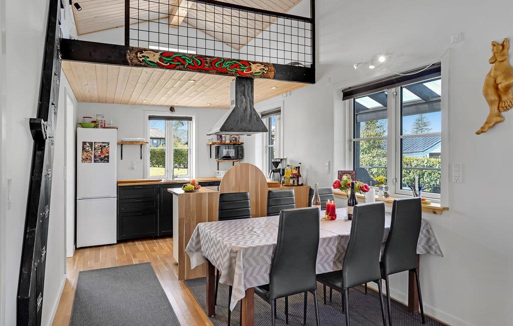 Freuen Sie sich auf ein dekoratives und stilvoll eingerichtetes Ferienhaus in Dänemark, welches Ihnen unglaublich viel Platz bieten wird, um sich vollkommen wohlfühlen zu können. Einerseits können Sie sich in der Wohnzimmerecke auf einem der Sitzmöglichkeiten gemütlichen machen, während Ihre Liebsten im Küchenbereich das Frühstück zubereiten, welches Sie zusammen entweder auf der offenen Terrasse oder beim Esstisch gustieren können. Der private Garten lädt auch zu Aktivitäten in den Ferien ein, u.a. zum Grillen oder für die jungen Gäste, die sich ungestört auf jedem Quadartmeter austoben können.